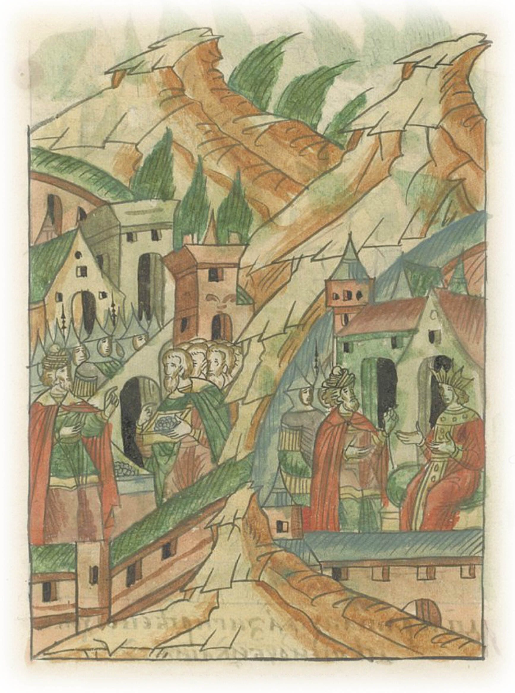 Ругодивские посадники Яким и Захар приезжают в Москву. Воеводы царя Ивана Васильевича Алексей Адашев и Иван Михайлов сообщают им, что государь пожалует их, если сдадут его воеводам помимо Ругодива Вышгород.