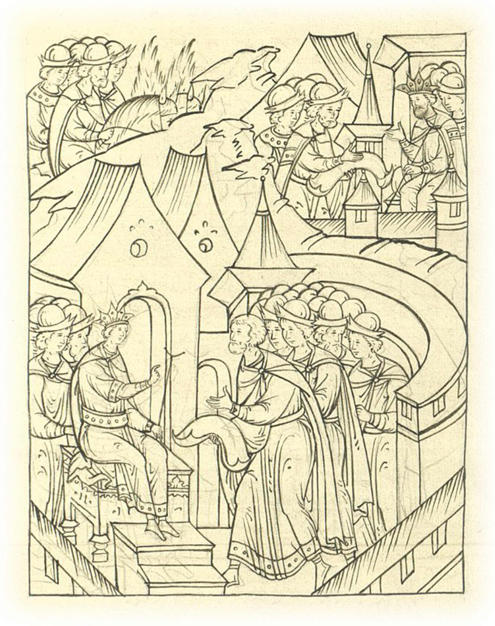 Ругодивские посадники Яким и Захар приезжают в Москву. Воеводы царя Ивана Васильевича Алексей Адашев и Иван Михайлов сообщают им, что государь пожалует их, если сдадут его воеводам помимо Ругодива Вышгород.