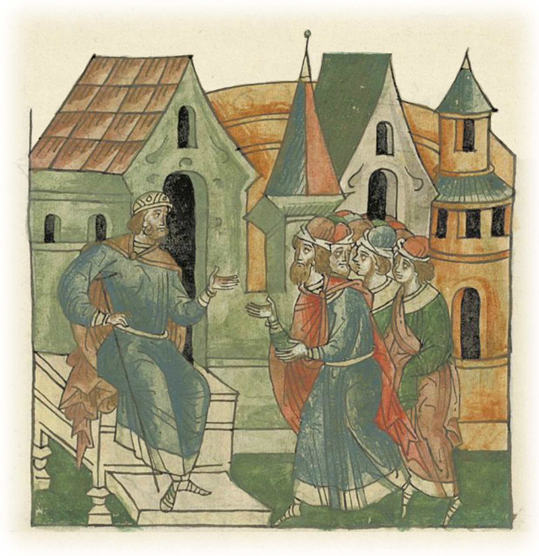 Ругодивские посадники Яким и Захар приезжают в Москву. Воеводы царя Ивана Васильевича Алексей Адашев и Иван Михайлов сообщают им, что государь пожалует их, если сдадут его воеводам помимо Ругодива Вышгород.