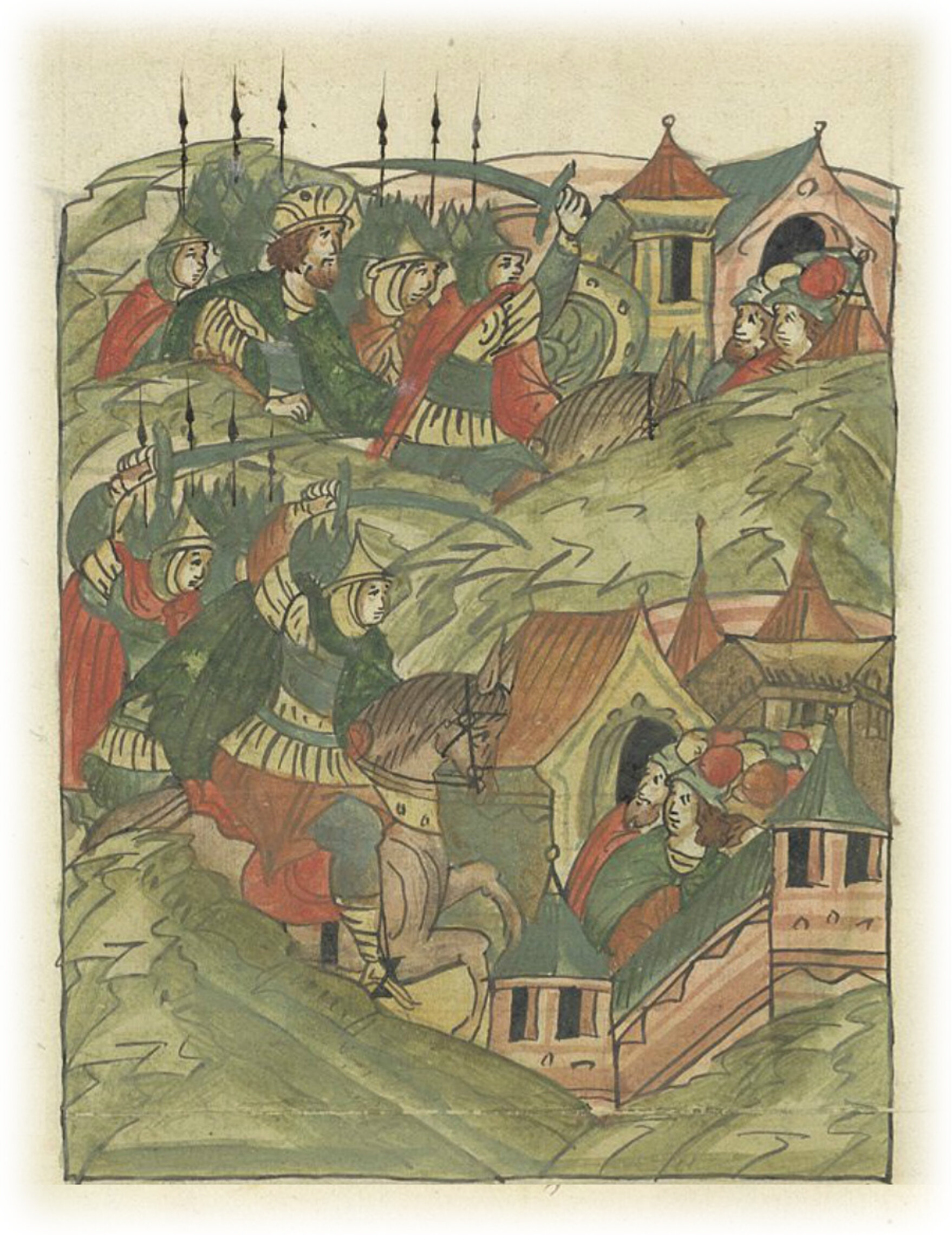 Языки говорят воеводам царя Ивана Васильевича, что магистр окопался большим рвом вокруг города Рындола, бьет из пушек и пищалей и приступает к Рындолу.