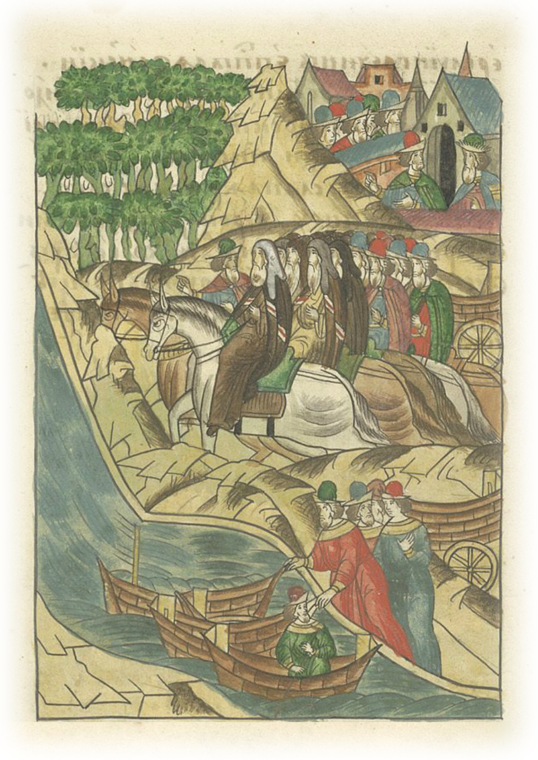 Мы же пошли вперед; и отпустил с нами боярина своего Станислава с довольно (большой) дружиною; повелел нас проводить до реки Дона с великим опасением из-за разбойников. Проводили же нас тогда и епископы многие: Феодор Ростовский, Ефросин Суздальский, Еремий Гречин, епископ Рязанский, Исакий, епископ Черниговский, Данило, епископ Звенигородский, и архимандриты, и игумены, и иноки. Пошли же от Переславля Рязанского в неделю Фомину. Препроводили же с нами и три струга да насад на колесах; в четверг же пришли к реке Дону и спустили суда на реку Дон.