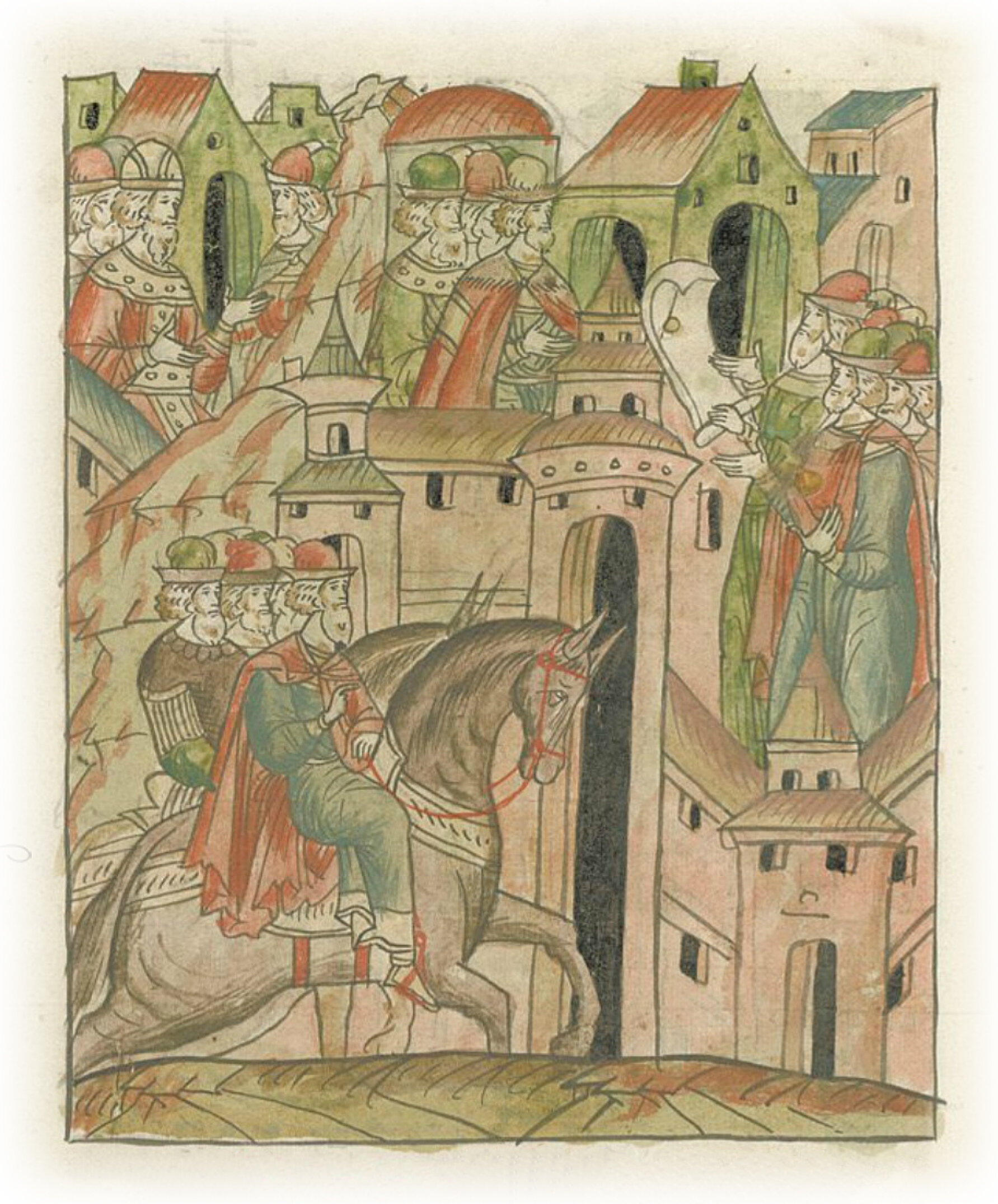 Возвращение в Москву послов великого князя от Римского короля Максимилиана с его послом Юрием Делатором с договорной грамотой о крестном целовании.