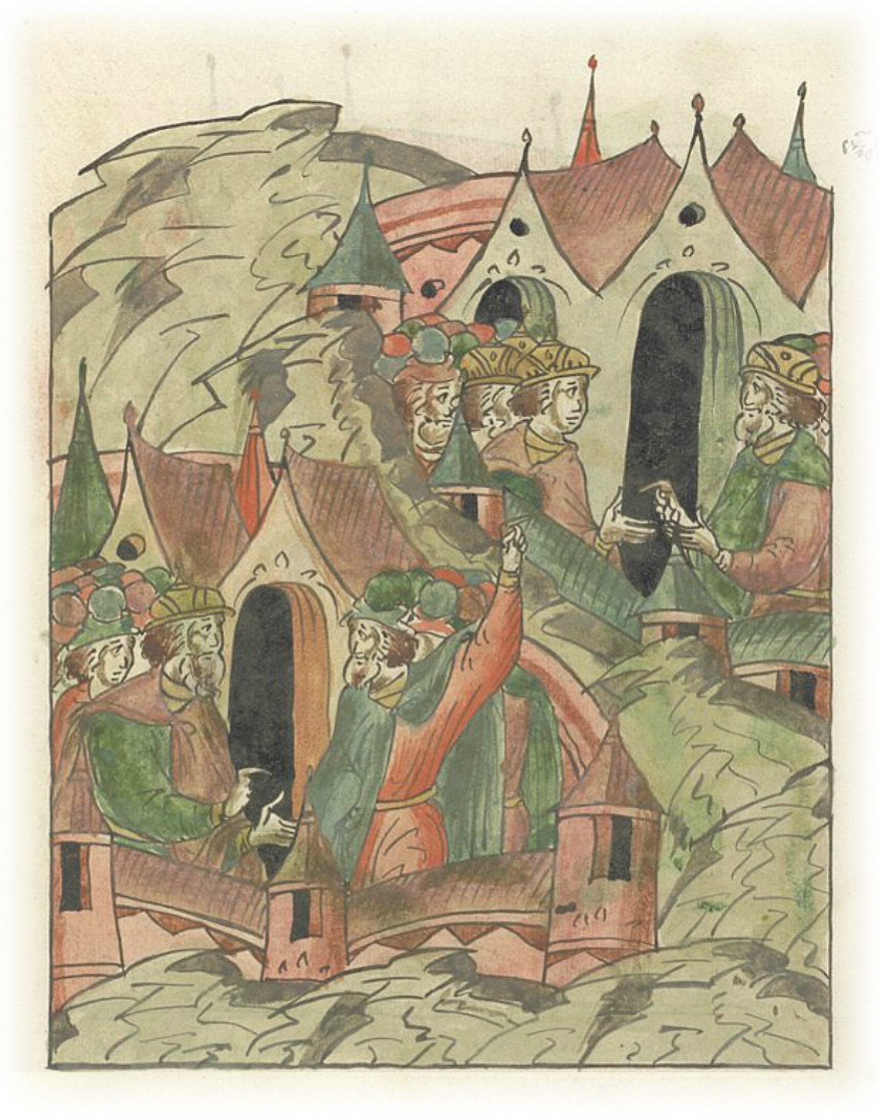 Ругодивские посадники Яким и Захар приезжают в Москву. Воеводы царя Ивана Васильевича Алексей Адашев и Иван Михайлов сообщают им, что государь пожалует их, если сдадут его воеводам помимо Ругодива Вышгород.