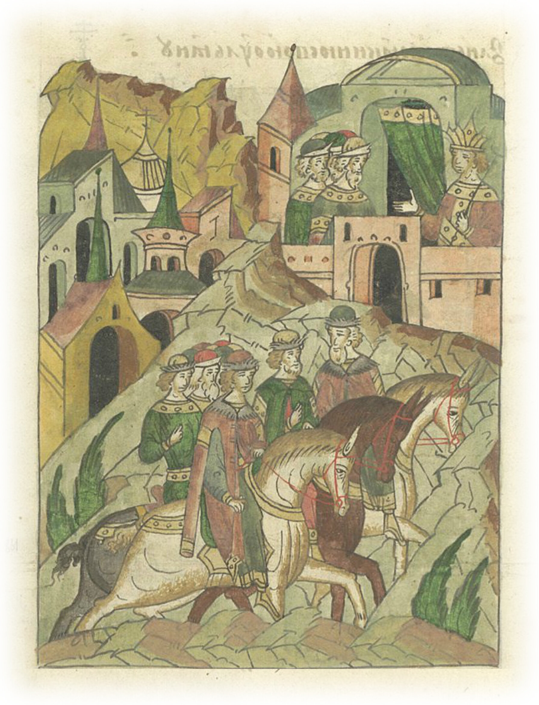 Великий князь Семен Иванович с братьми Андреем и Иваном идет из Москвы в Орду к царю Джанибеку.