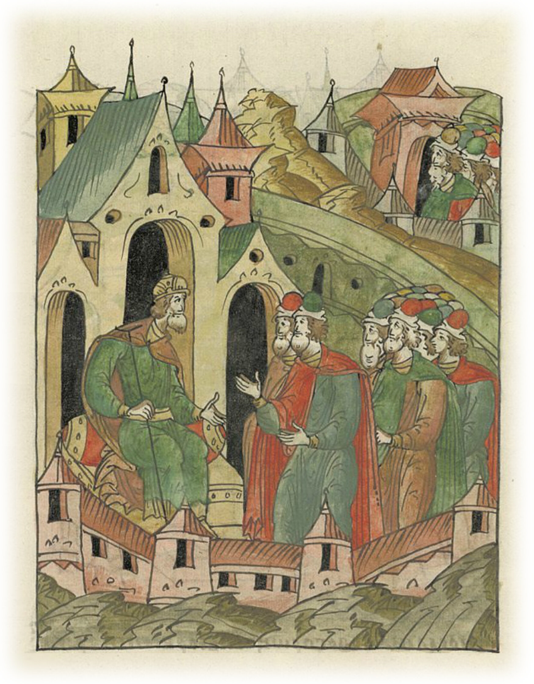 Ругодивские посадники Яким и Захар приезжают в Москву. Воеводы царя Ивана Васильевича Алексей Адашев и Иван Михайлов сообщают им, что государь пожалует их, если сдадут его воеводам помимо Ругодива Вышгород.