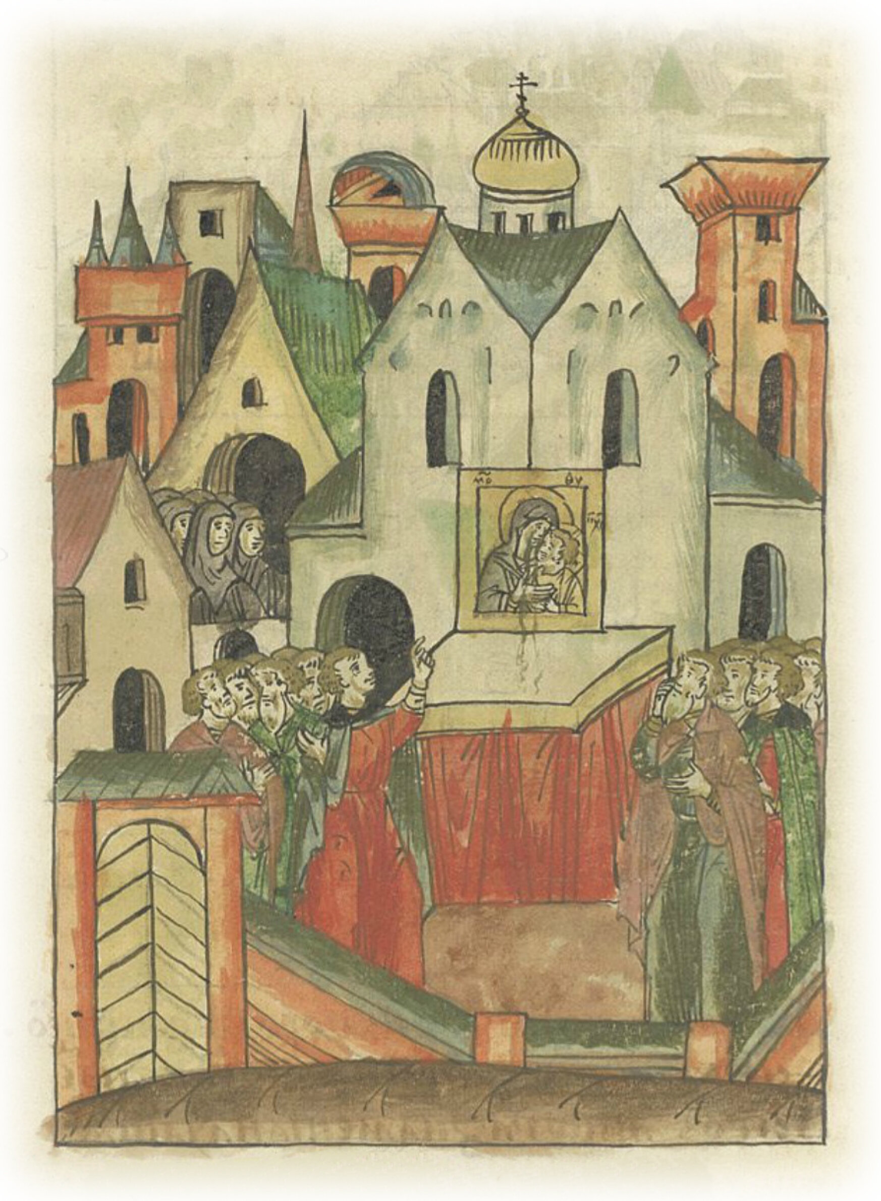 И еще иное знамение страшное и удивления достойное: в женском монастыре святой великомученицы Евфимии от иконы пресвятой Богородицы обильные слезы, как струи, из очей исходили. Видевшие это Бога боящиеся люди новгородские многие плакали и Бога молили; прочие же, каменное сердце имеющие, Бога не боявшиеся, ни во что это не ставили и в глумление впали, не ведая своей погибели и грядущего на них гнева Божьего. Таковые знамения никогда не бывают к добру, но только к голоду, или к мору, или к кровопролитию, или к пленению, как и в прежние времена, когда были цари израильские, пророки и прочие, раньше них, и после них, и до сего дня. И когда являются на солнце или на луне, или в звездах знамения или в другом каком творении, которые необычны, и тогда все то вписывается во временные книги, которые называются «криница», а также в летописание, в дни какого царя или пророка (это было), говоря так: в годы и во дни Давида царя, или Соломона, и Исайи пророка, или Езекии царя было то или иное. Они же являются и в нынешние времена, которые и наши очи видели.