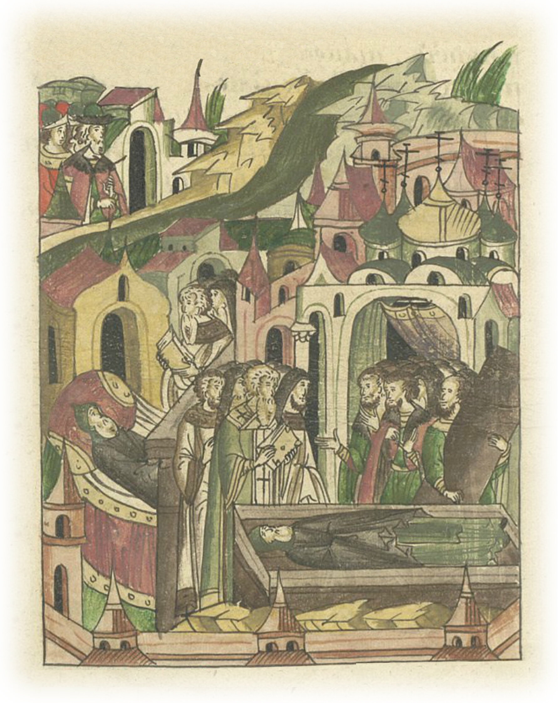 Кончина великого князя Ивана Даниловича Калиты и его похороны в церкви святого архангела Михаила в Москве, которую он сам создал.