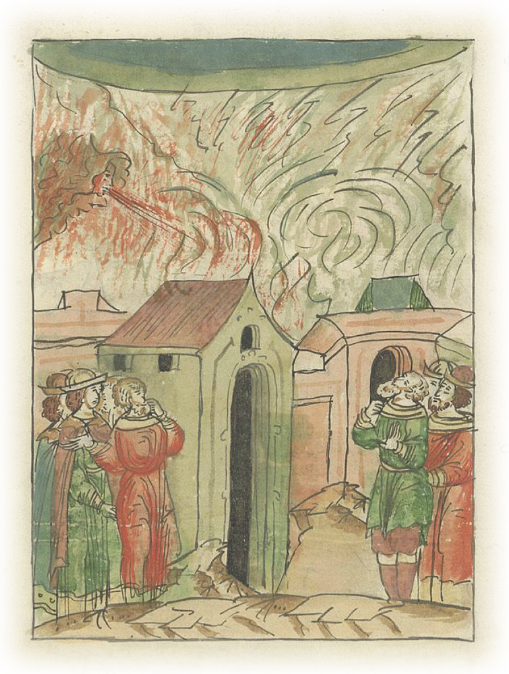 В ту же весну были сильные громы и страшные молнии, сильные ветры и вихри, и страшно было всем людям.