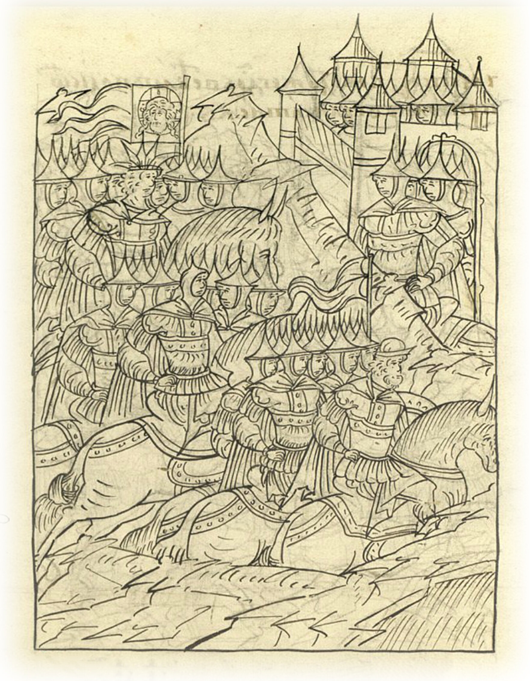 И, устроив полки, поехал прямо к городу, и пришли ертоулы государевы к Казани в верховье реки Булак у озера Кабан, и вышли казанцы из города, и пришли навстречу государевым полкам; государева же заповедь была – без веления никто не дерзнет на бой.
