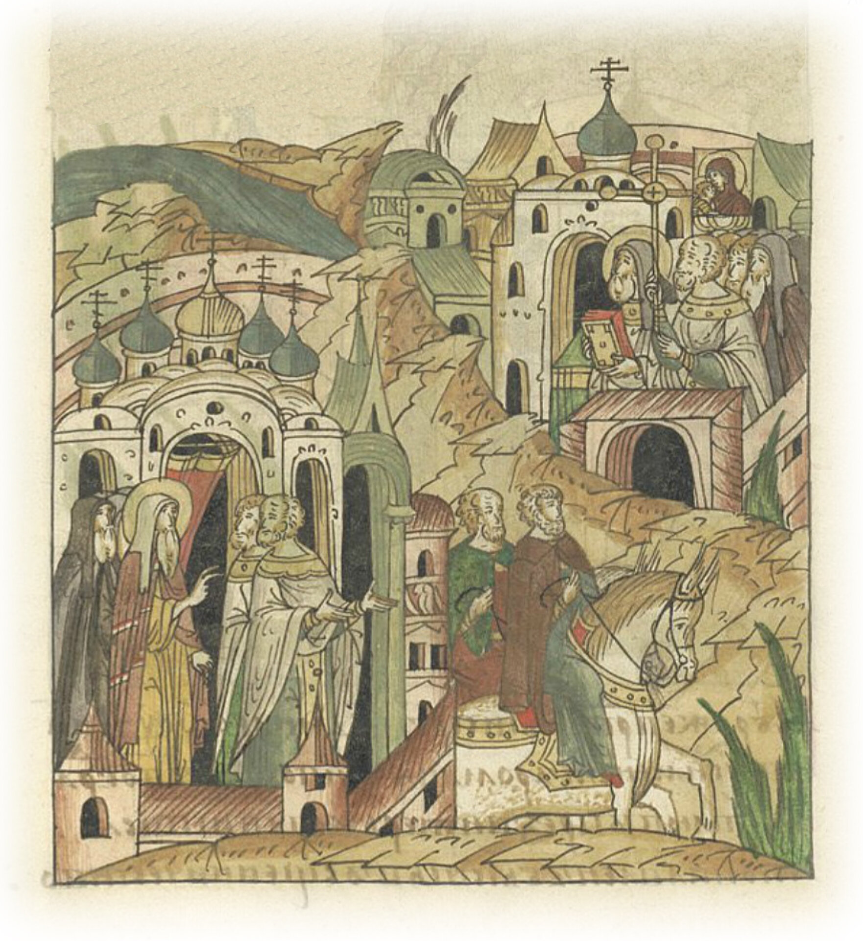 Повесть о преподобном Сергии Радонежском. Посланные митрополитом Алексеем священники освящают церковь во имя пречистой Богородицы на Кержаче.