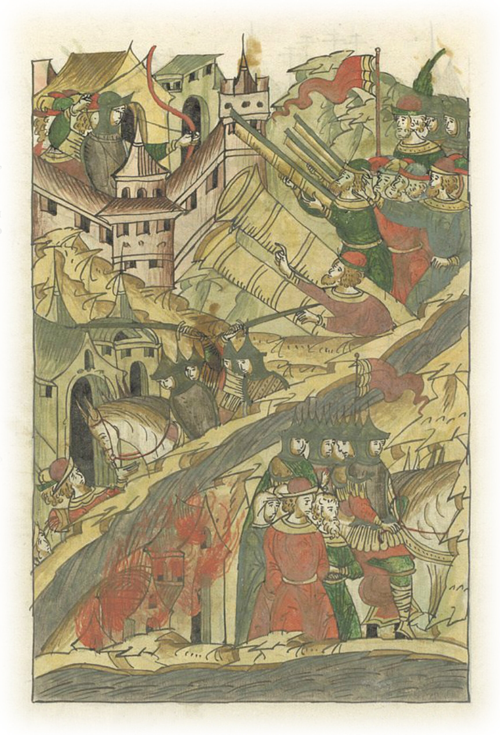 Языки говорят воеводам царя Ивана Васильевича, что магистр окопался большим рвом вокруг города Рындола, бьет из пушек и пищалей и приступает к Рындолу.
