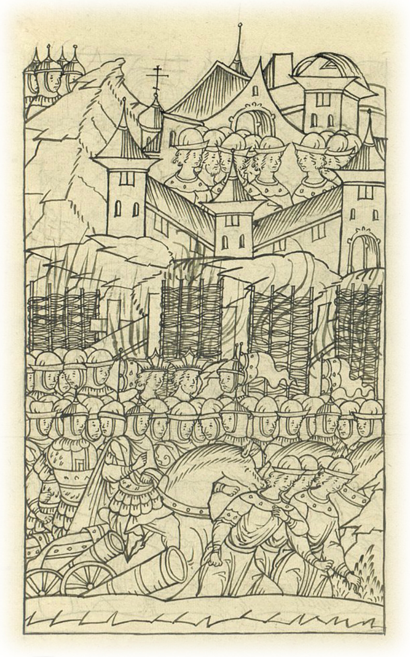 И царь приступ отложил, туры и наряд велел пожечь, а сам пошел прочь от города в субботу на Преображениев день.