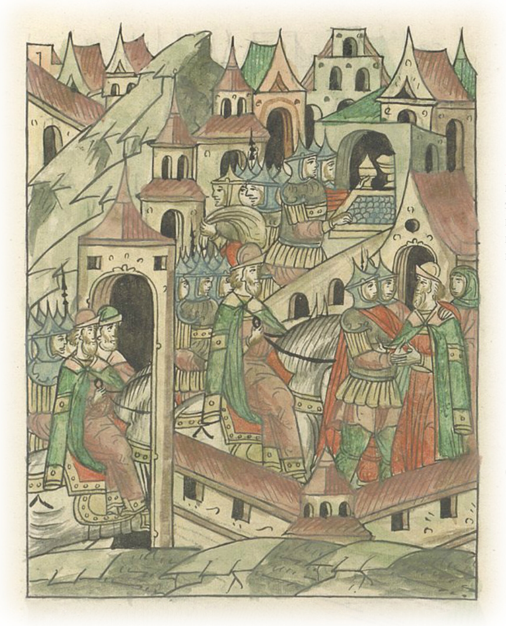 Ругодивские посадники Яким и Захар приезжают в Москву. Воеводы царя Ивана Васильевича Алексей Адашев и Иван Михайлов сообщают им, что государь пожалует их, если сдадут его воеводам помимо Ругодива Вышгород.