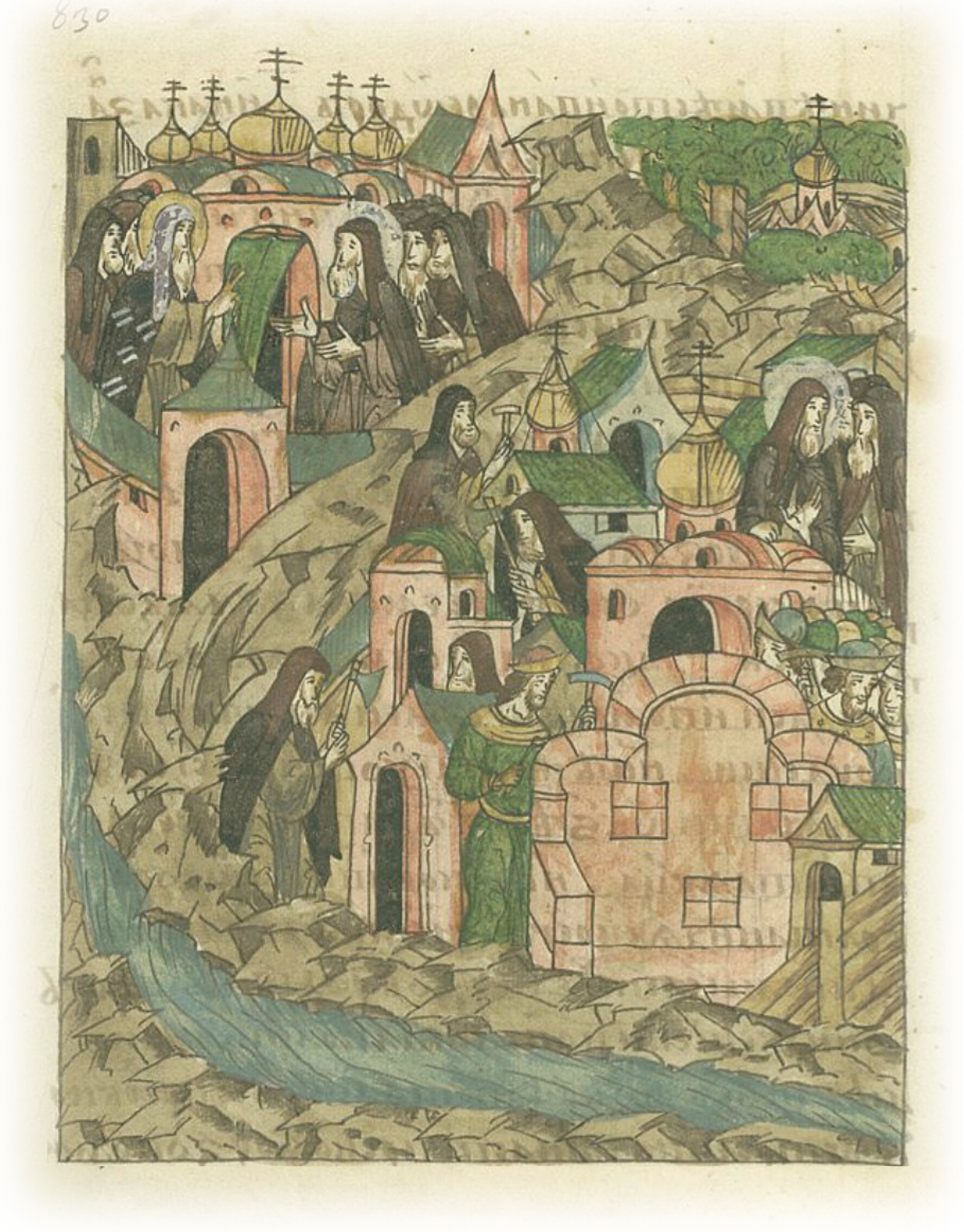 Повесть о преподобном Сергии Радонежском. Преподобный игумен Сергий получает от митрополита Алексея благословление на строительство монастыря в Симоново и основывает там церковь во имя Успения пречистой Богородицы.