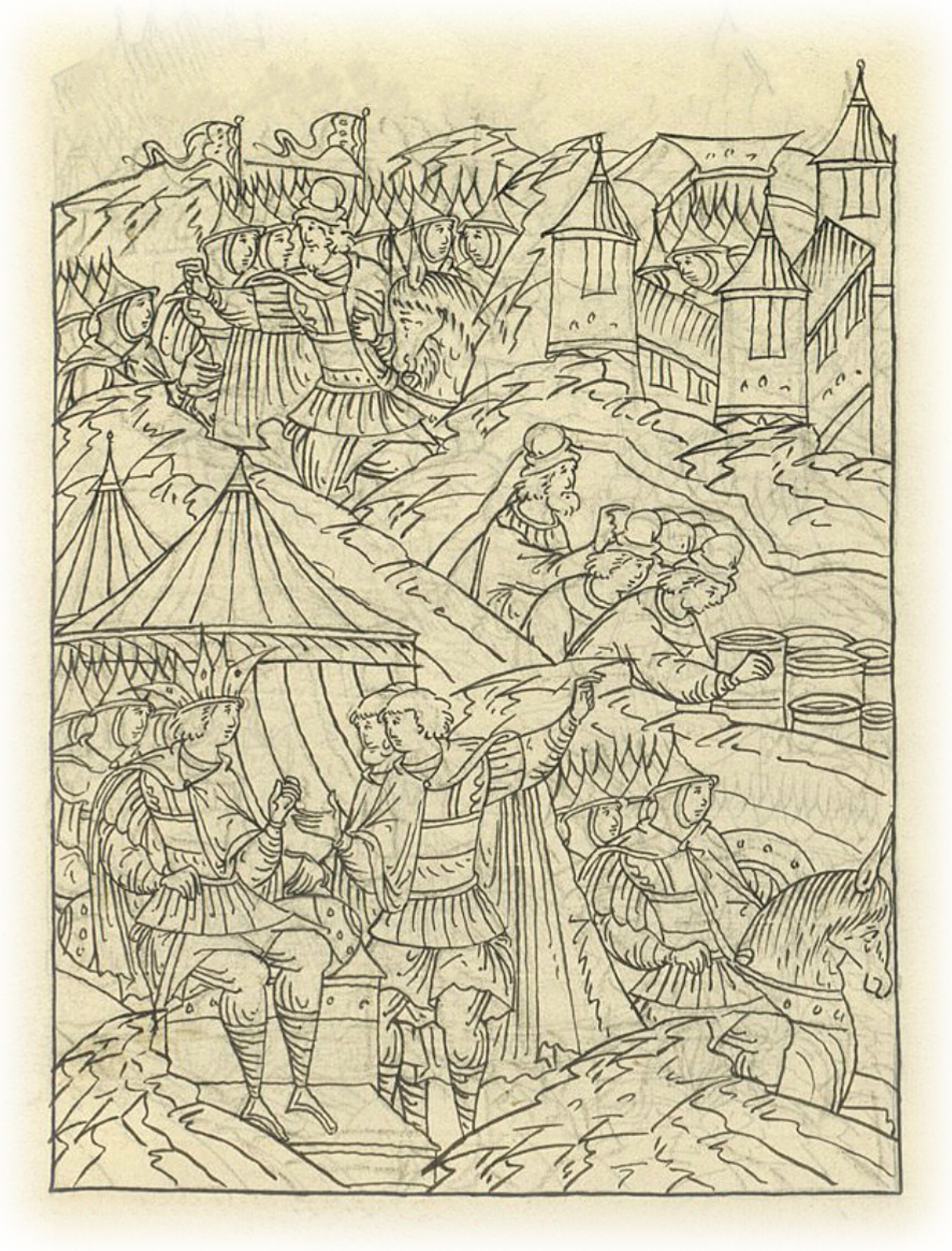 Языки говорят воеводам царя Ивана Васильевича, что магистр окопался большим рвом вокруг города Рындола, бьет из пушек и пищалей и приступает к Рындолу.