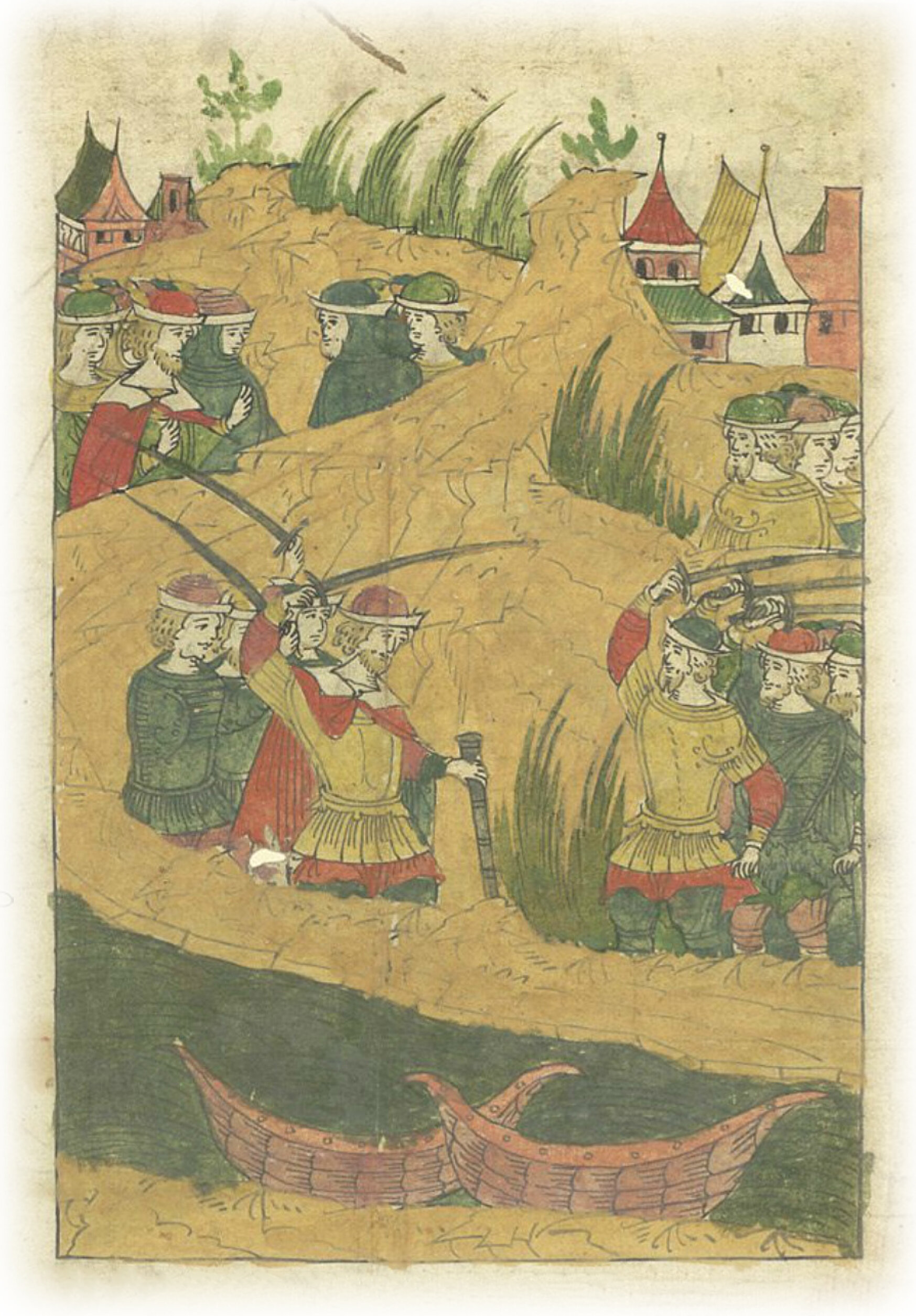 Языки говорят воеводам царя Ивана Васильевича, что магистр окопался большим рвом вокруг города Рындола, бьет из пушек и пищалей и приступает к Рындолу.