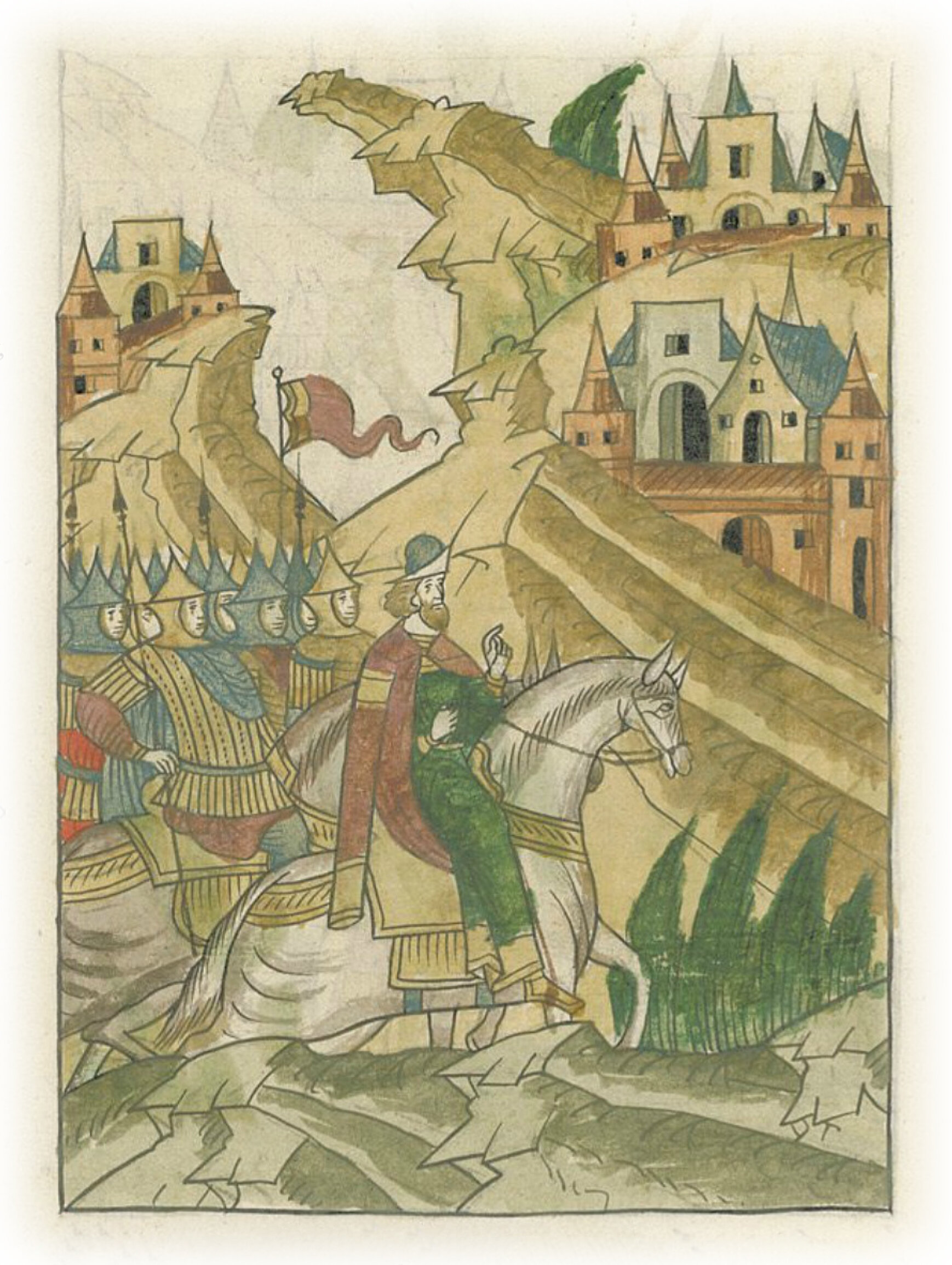 Воеводы царя Ивана Васильевича, разделившись, идут в погоню за царем Емгурчеем.