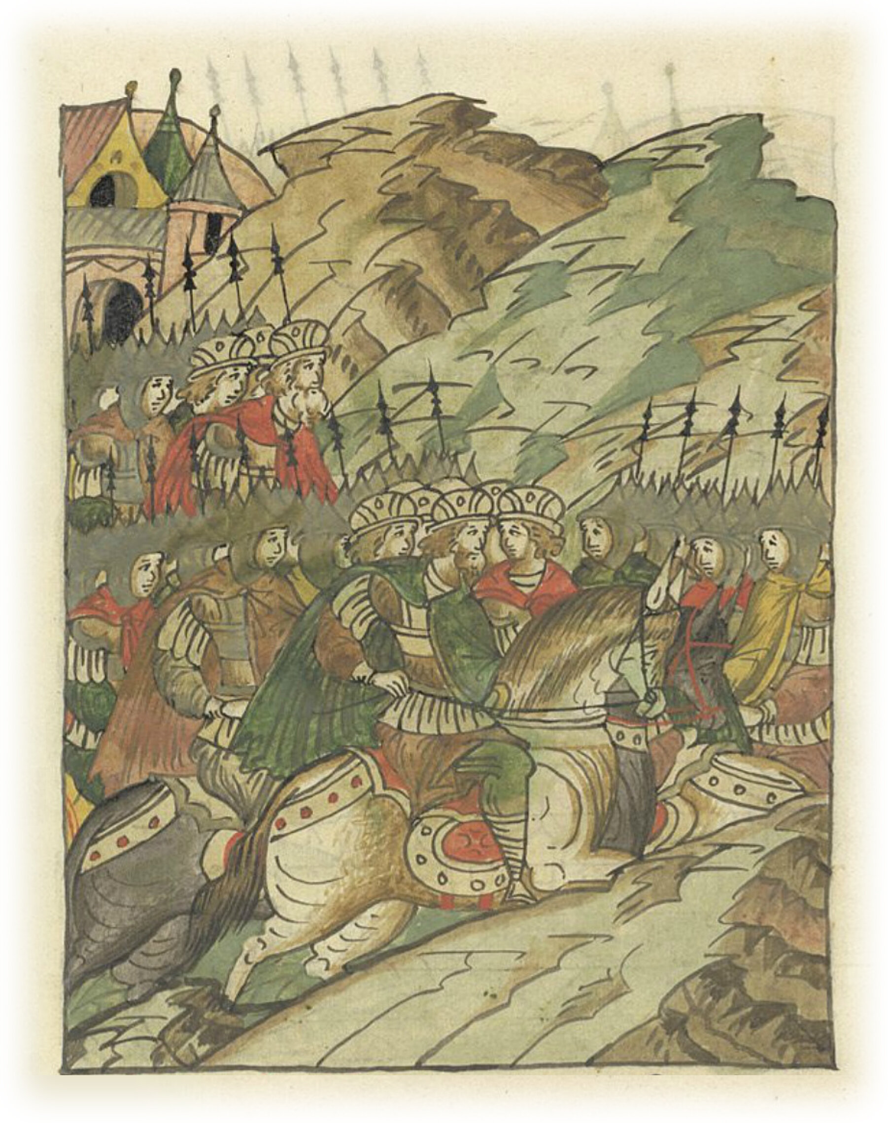 Языки говорят воеводам царя Ивана Васильевича, что магистр окопался большим рвом вокруг города Рындола, бьет из пушек и пищалей и приступает к Рындолу.