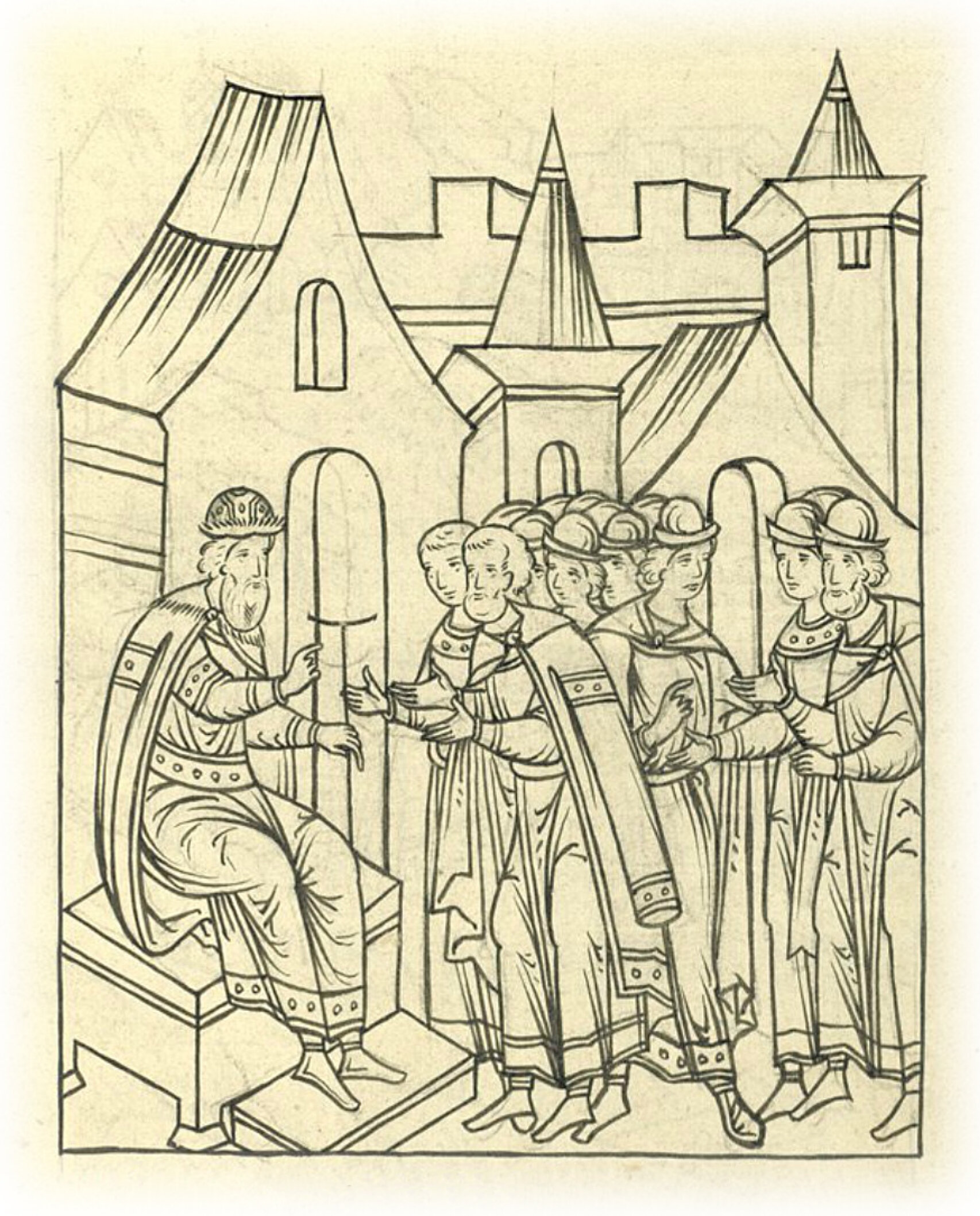 Ругодивские посадники Яким и Захар приезжают в Москву. Воеводы царя Ивана Васильевича Алексей Адашев и Иван Михайлов сообщают им, что государь пожалует их, если сдадут его воеводам помимо Ругодива Вышгород.