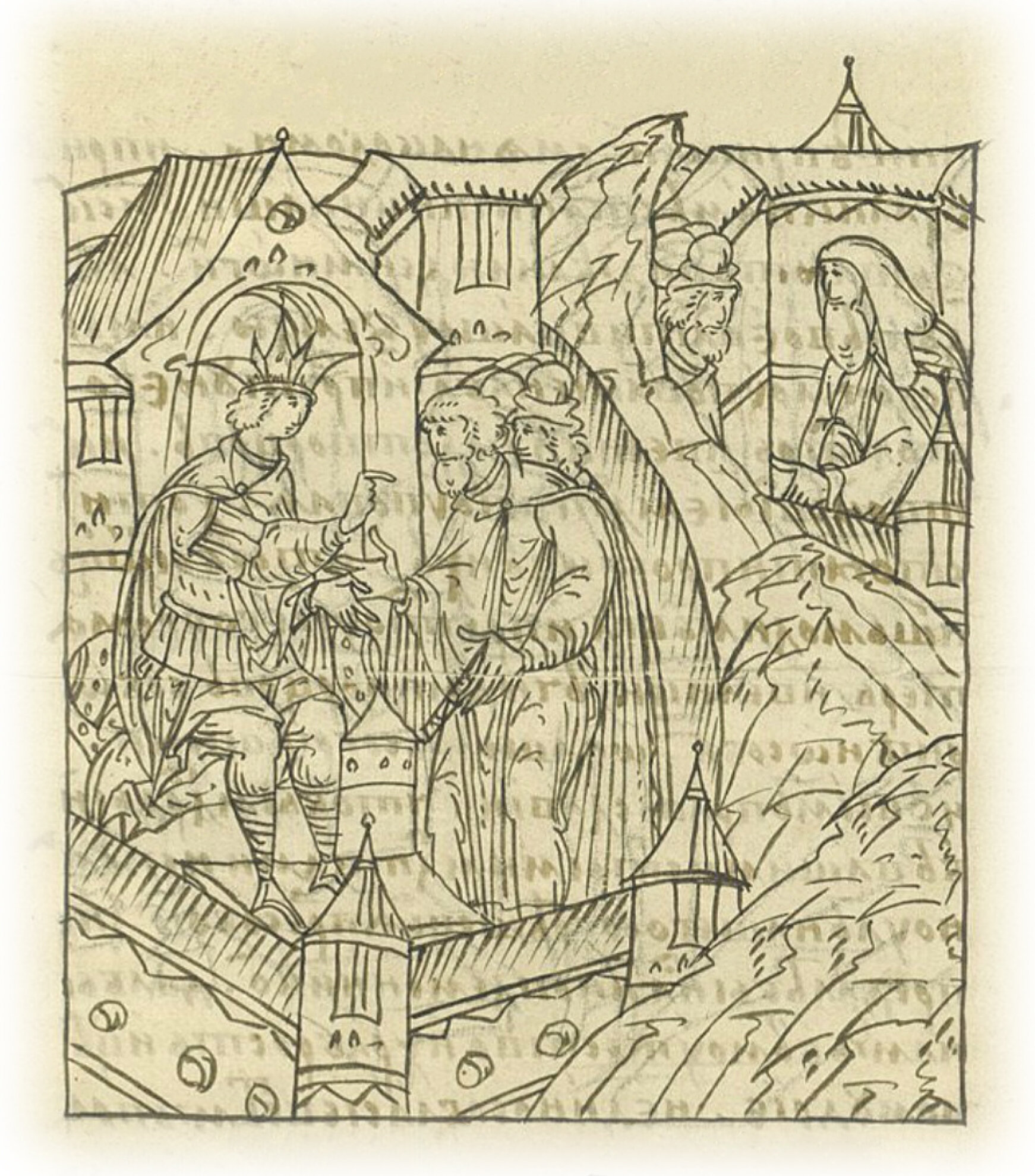 Ругодивские посадники Яким и Захар приезжают в Москву. Воеводы царя Ивана Васильевича Алексей Адашев и Иван Михайлов сообщают им, что государь пожалует их, если сдадут его воеводам помимо Ругодива Вышгород.