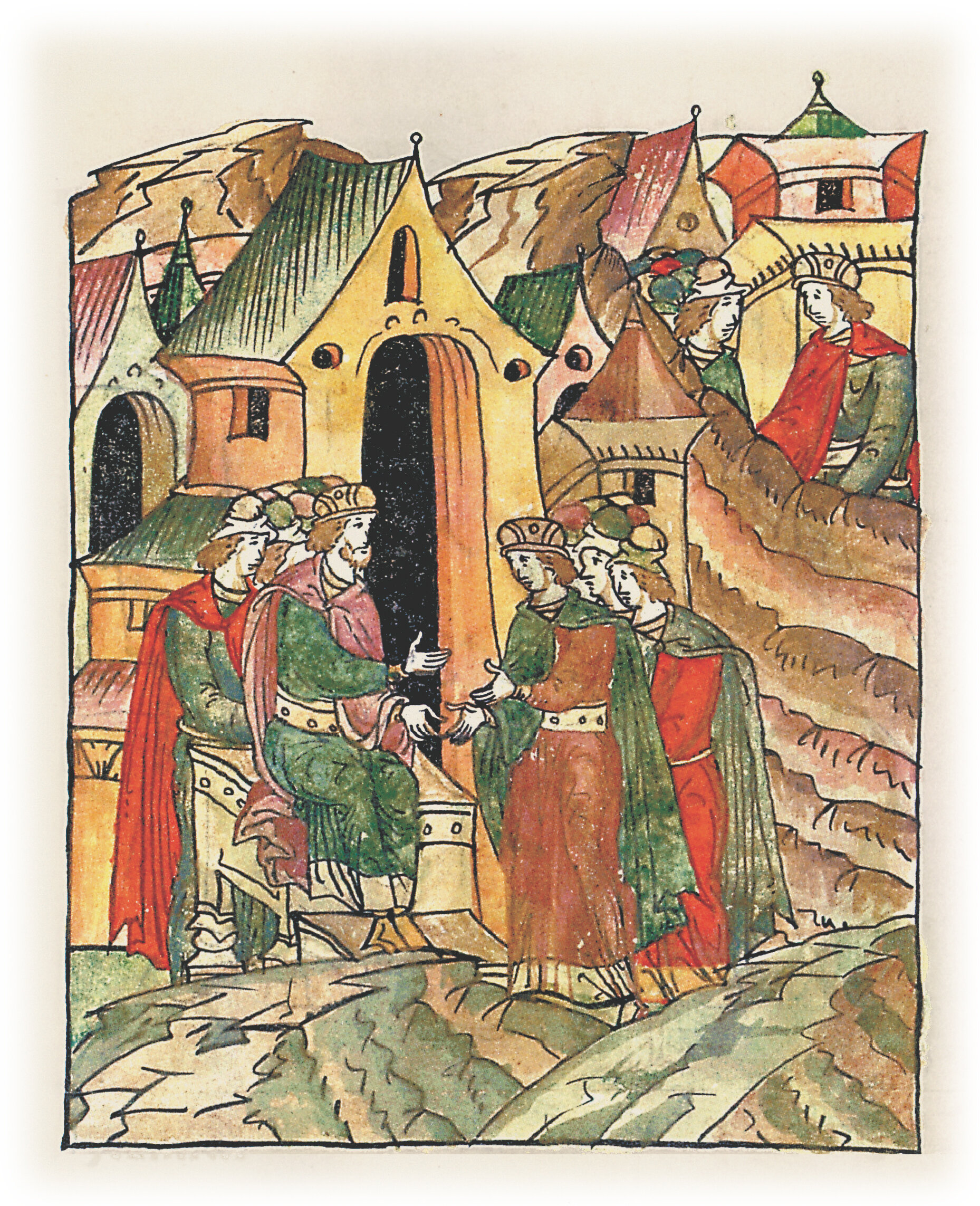 И придя в Киев, радостно был принят отцом своим*; и пробыл у него в Киеве некоторое время; и смущались о нестроениях братии своей, и племянников, и родных, и всего племени своего, что всегда в мятеже и в волнении пребывают, и много крови проливают, так как все желают и хотят великого княжения Киевского, и нет никому ни с кем мира, * Речь идет об Андрее Боголюбском.