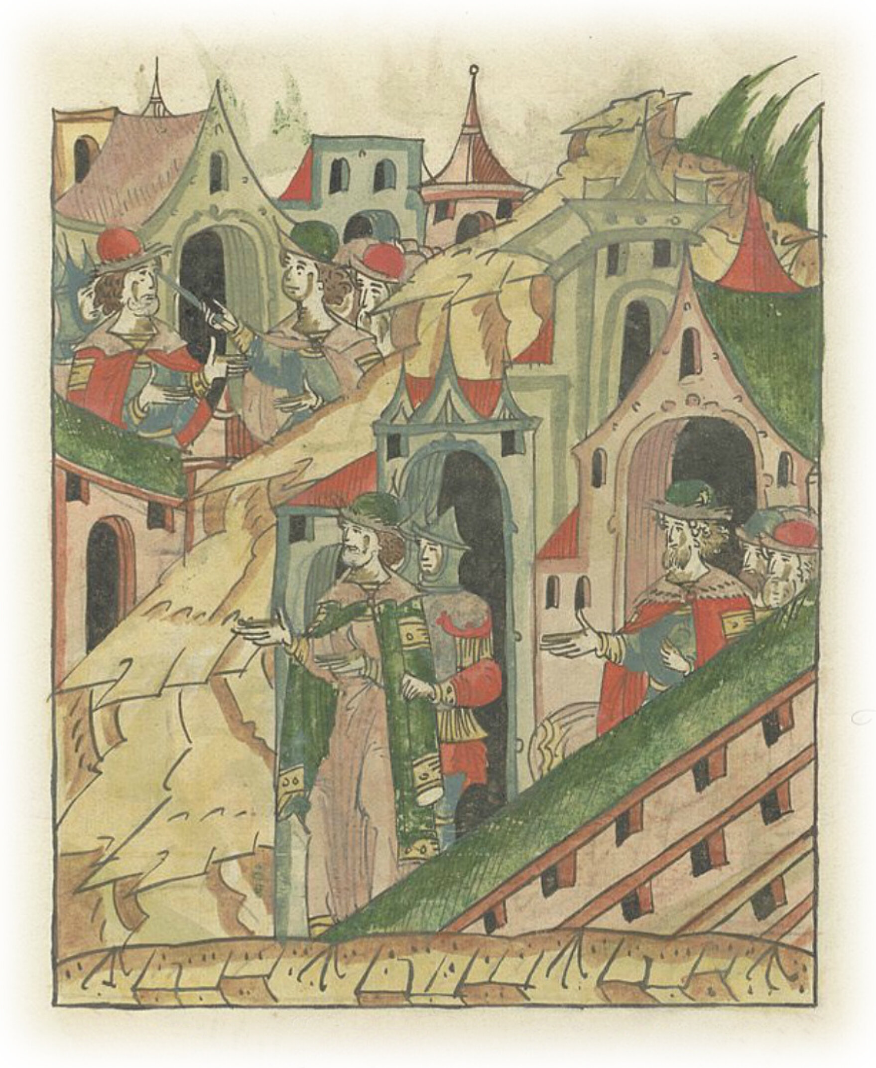 Ругодивские посадники Яким и Захар приезжают в Москву. Воеводы царя Ивана Васильевича Алексей Адашев и Иван Михайлов сообщают им, что государь пожалует их, если сдадут его воеводам помимо Ругодива Вышгород.