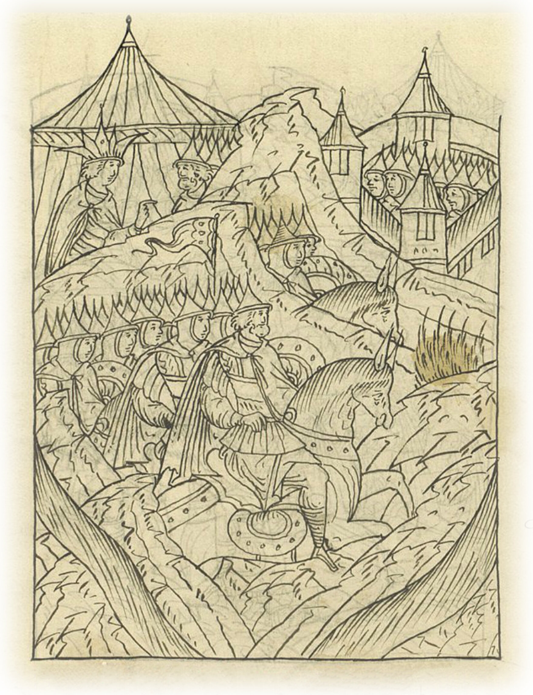 Языки говорят воеводам царя Ивана Васильевича, что магистр окопался большим рвом вокруг города Рындола, бьет из пушек и пищалей и приступает к Рындолу.