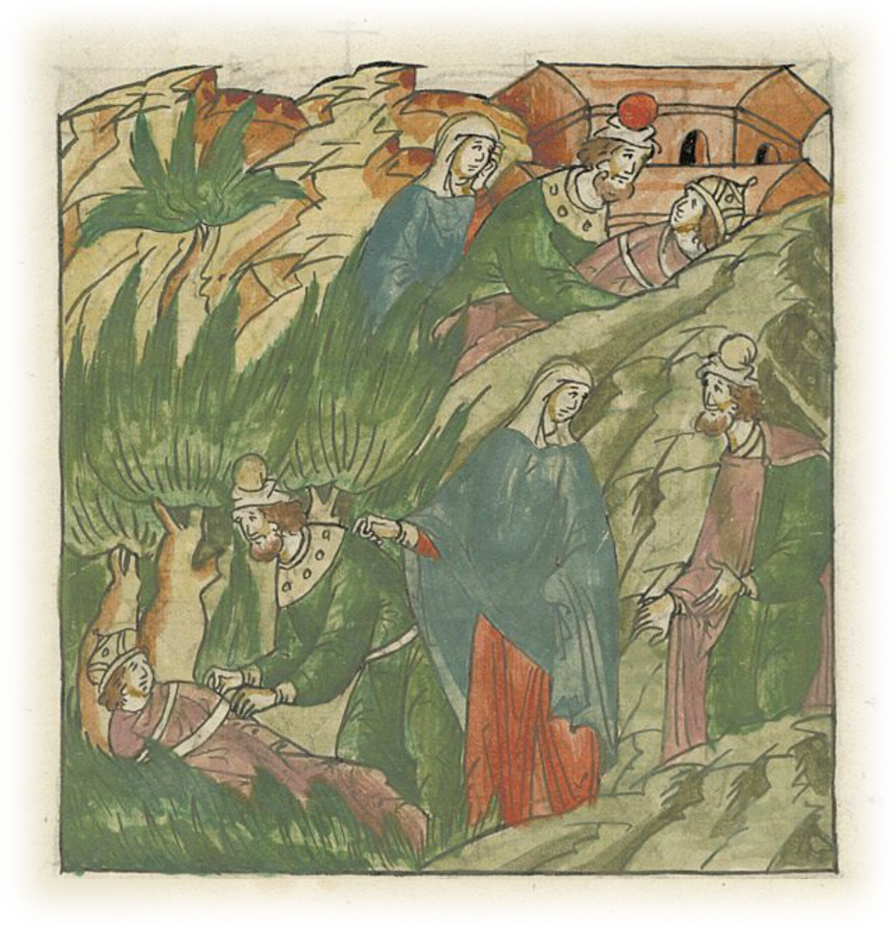 Василька же после убиения его бросили окаянные в лесу; увидела же его некая боголюбивая женщина Мария и поведала мужу своему, также боголюбивому, Андриану Поповичу; он же взял тело его и завернул в плащаницу, и положил его в скрытом месте.