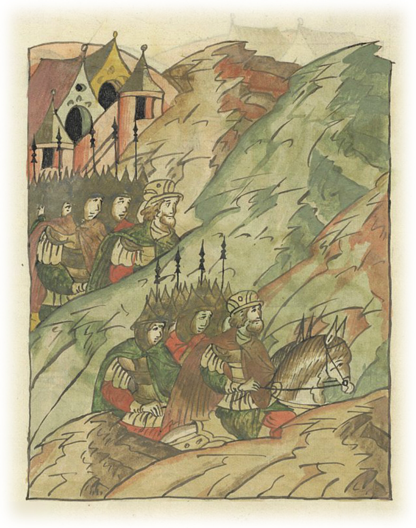 Воеводы царя Ивана Васильевича, разделившись, идут в погоню за царем Емгурчеем.