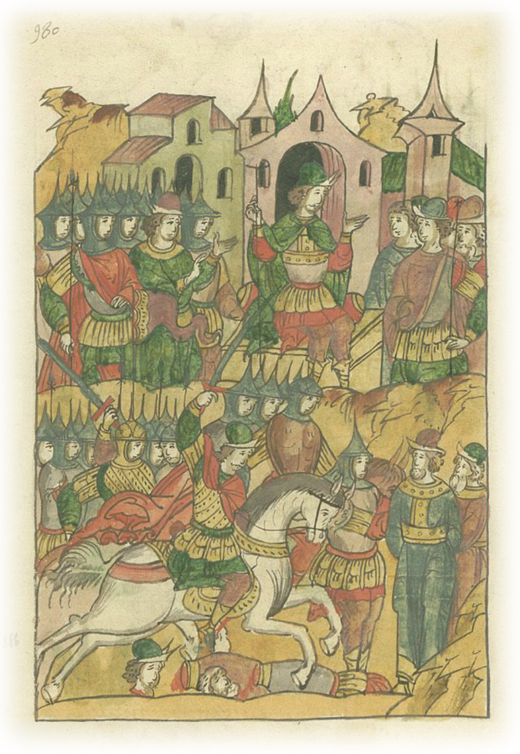 Языки говорят воеводам царя Ивана Васильевича, что магистр окопался большим рвом вокруг города Рындола, бьет из пушек и пищалей и приступает к Рындолу.