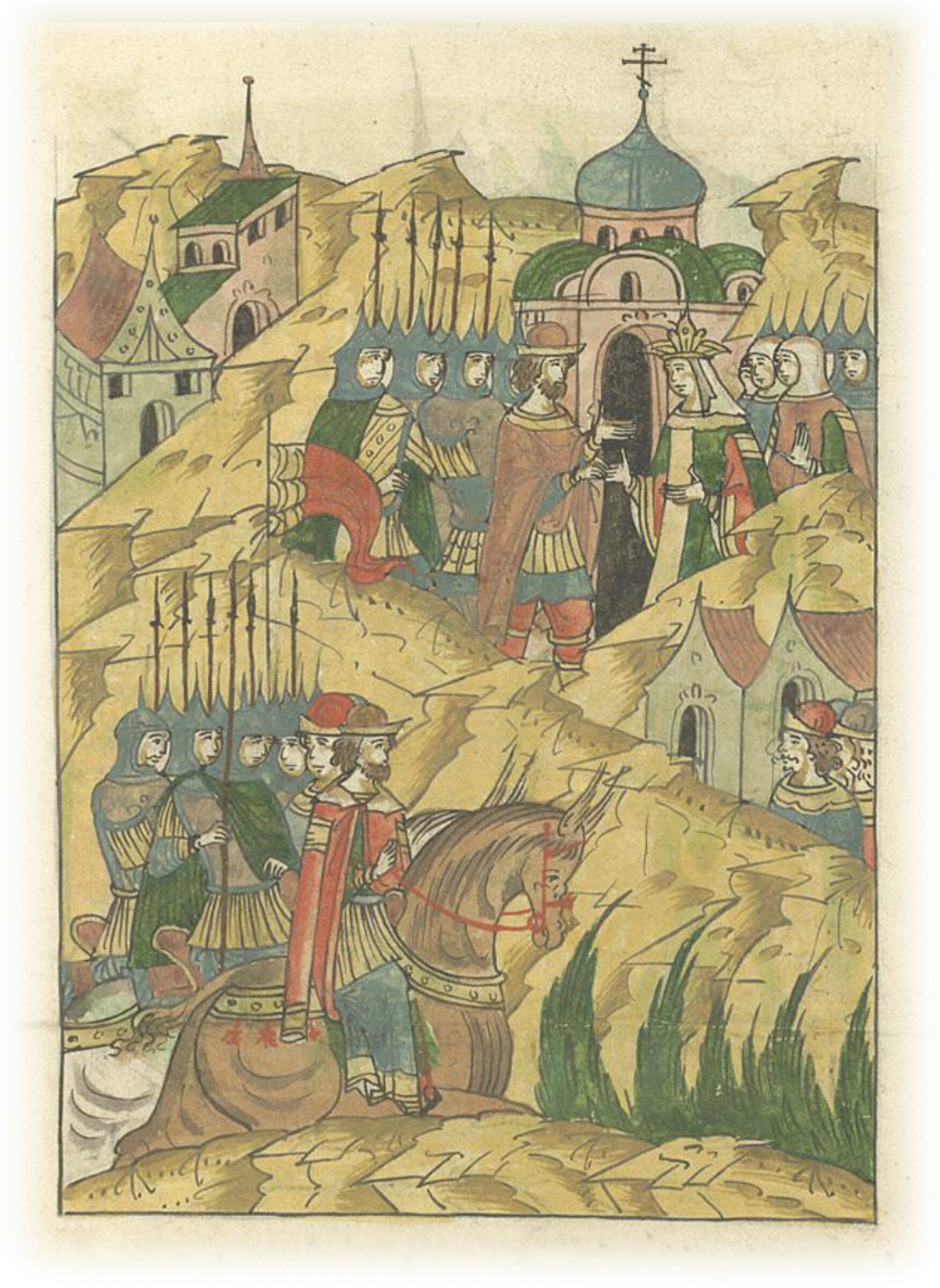 Войско великого князя Василия Дмитриевича берет в плен княгиню Александру, жену князя Семена Дмитриевича.