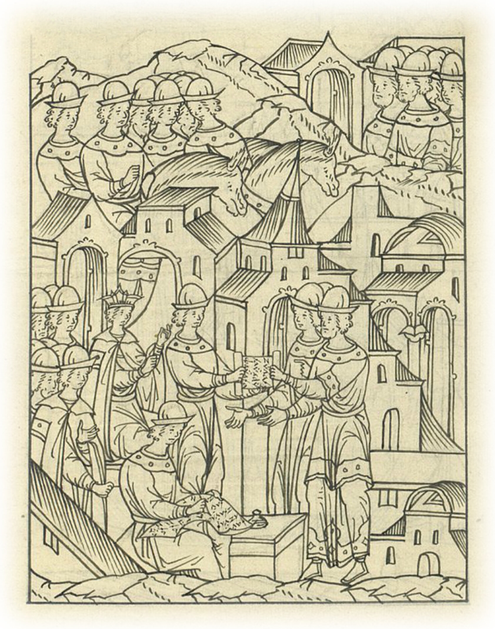 Ругодивские посадники Яким и Захар приезжают в Москву. Воеводы царя Ивана Васильевича Алексей Адашев и Иван Михайлов сообщают им, что государь пожалует их, если сдадут его воеводам помимо Ругодива Вышгород.