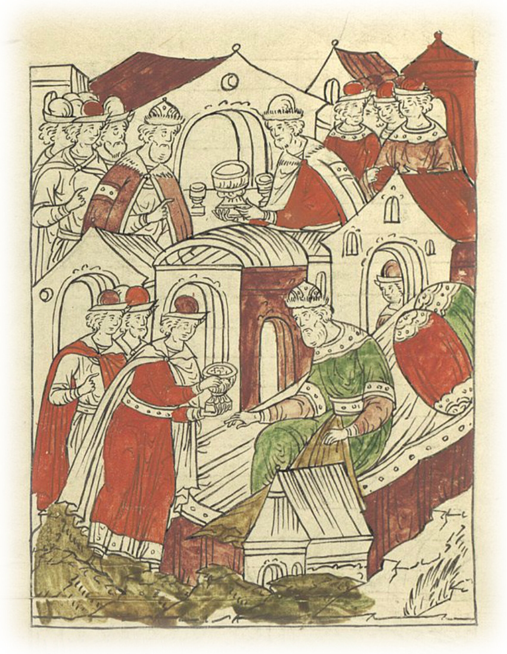 Великий князь Василий Иванович с братом князем Андреем Ивановичем с трудом сидит за столом, и с того времени ест только в постели.