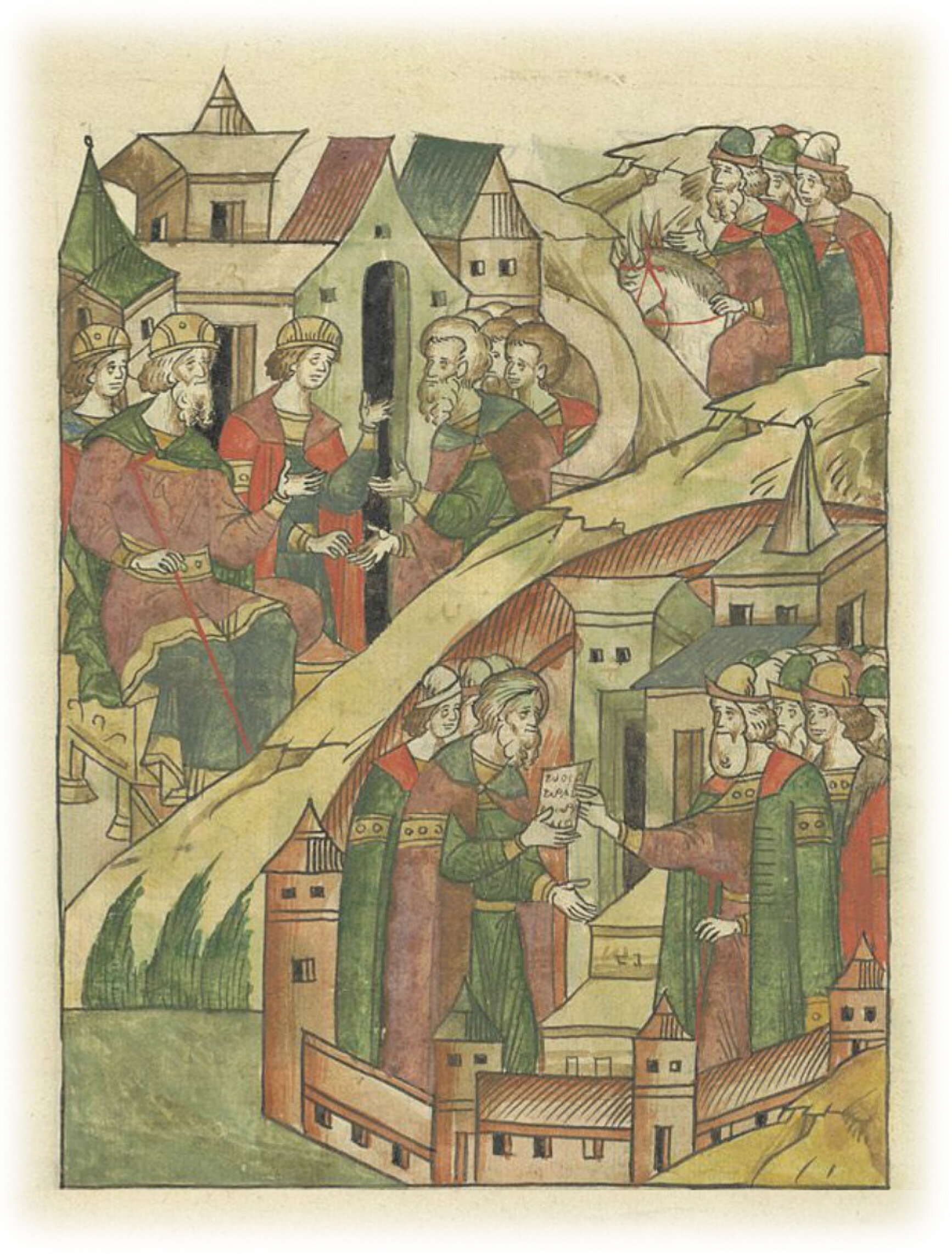 Ругодивские посадники Яким и Захар приезжают в Москву. Воеводы царя Ивана Васильевича Алексей Адашев и Иван Михайлов сообщают им, что государь пожалует их, если сдадут его воеводам помимо Ругодива Вышгород.