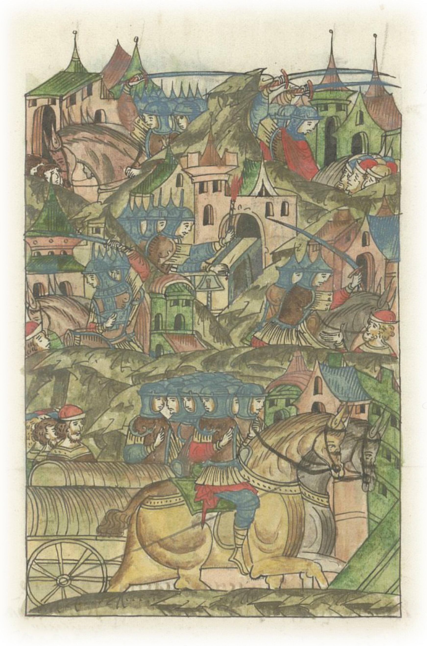 Языки говорят воеводам царя Ивана Васильевича, что магистр окопался большим рвом вокруг города Рындола, бьет из пушек и пищалей и приступает к Рындолу.