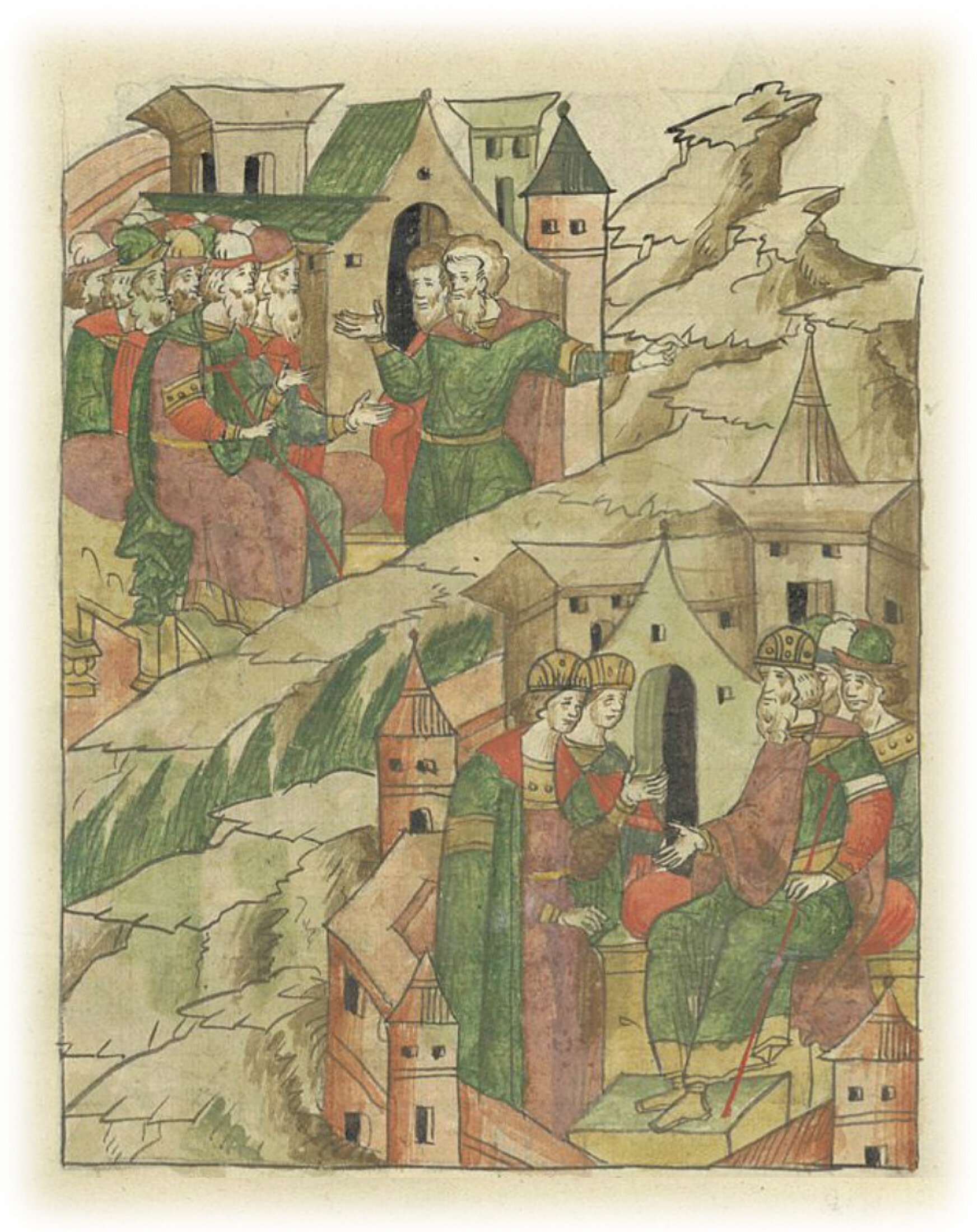 Ругодивские посадники Яким и Захар приезжают в Москву. Воеводы царя Ивана Васильевича Алексей Адашев и Иван Михайлов сообщают им, что государь пожалует их, если сдадут его воеводам помимо Ругодива Вышгород.