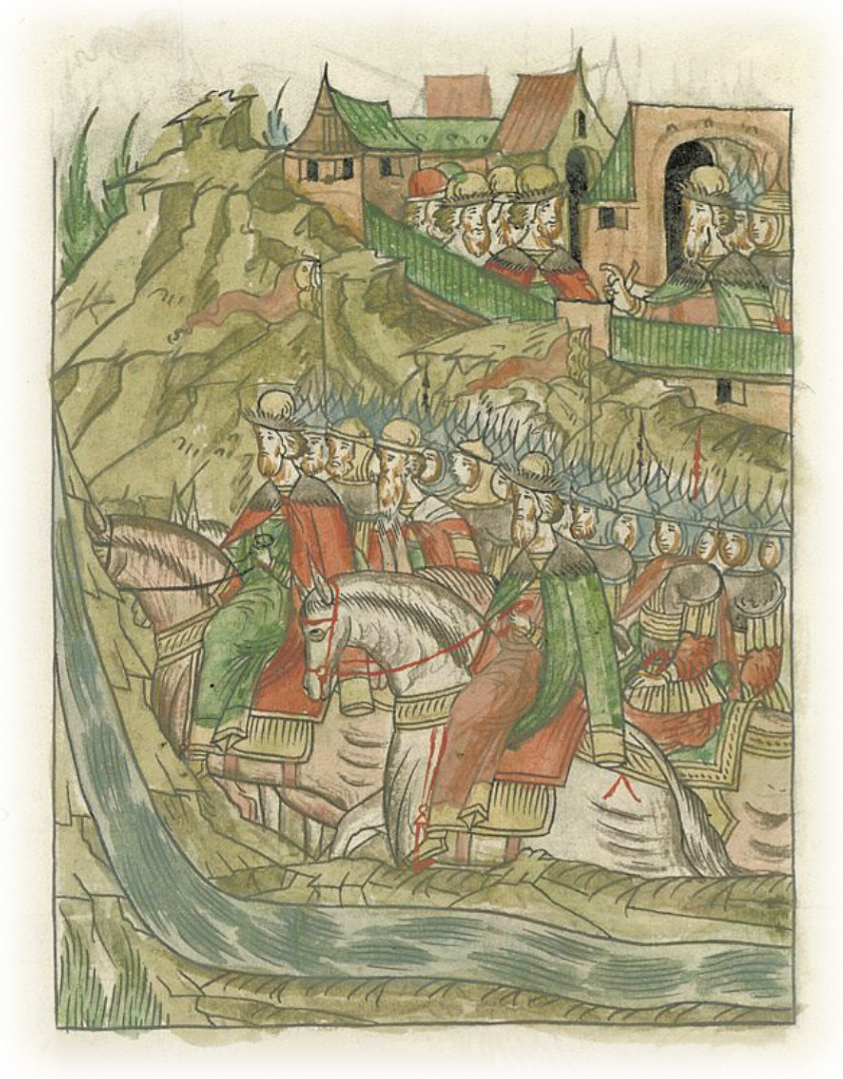Великий князь Иван Васильевич отпускает на Оку своего сына, великого князя Ивана, своего брата, князя Андрея Меньшого, и князя Василия Михайловича.