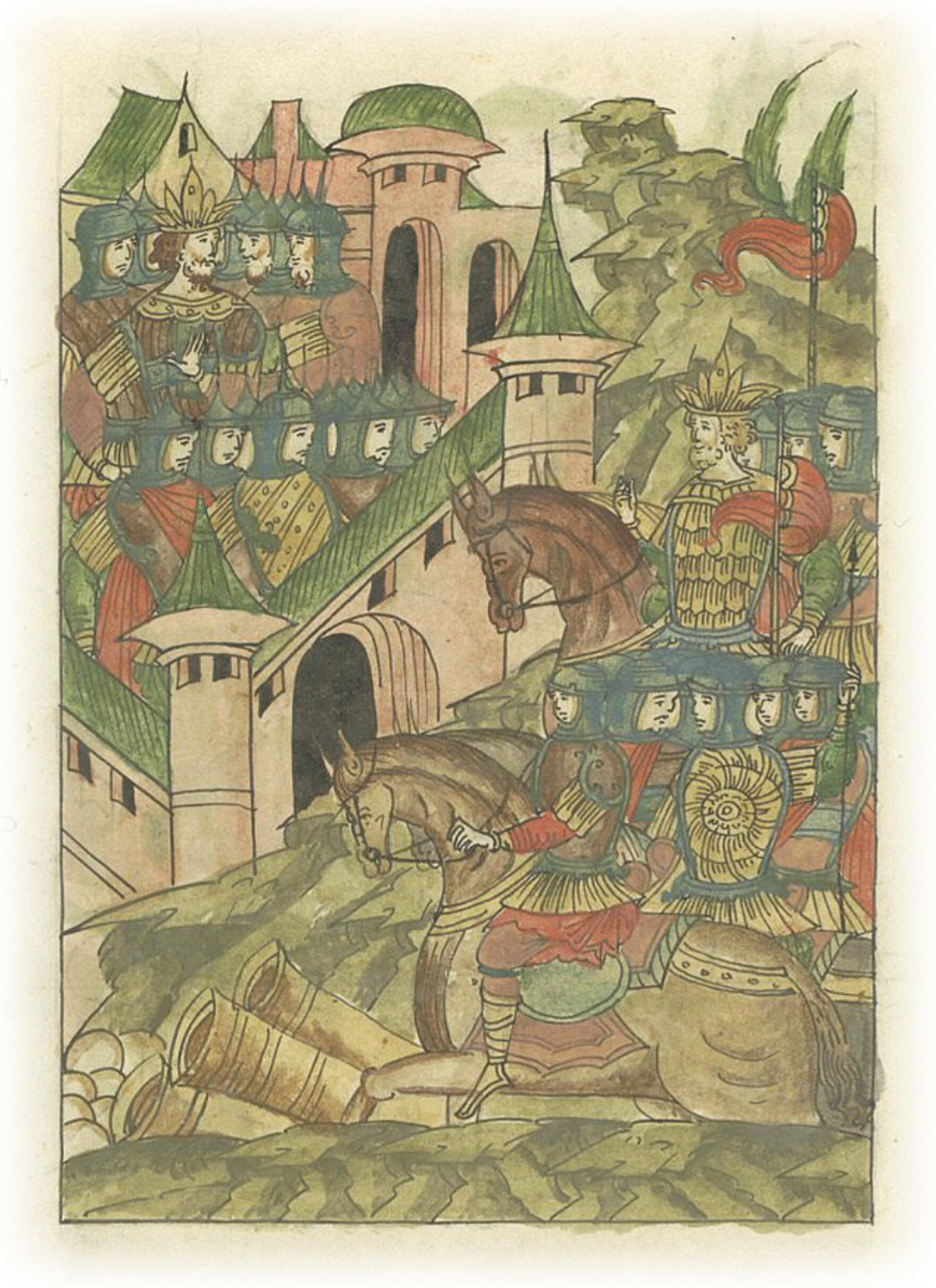 Воеводы же и все вельможи, видя устремление неверного, пришедшего с силой великой, отвели царя, чтобы не погиб всуе, зря.