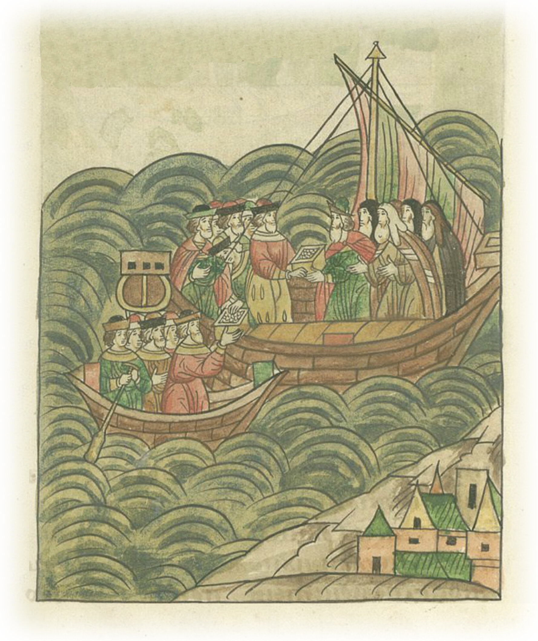 О походе митрополита Пимена в Царьград со Смоленским владыкой Михаилом и Спасским архимандритом Сергием. Фряги, взяв мзду, отпускают всех невредимыми.