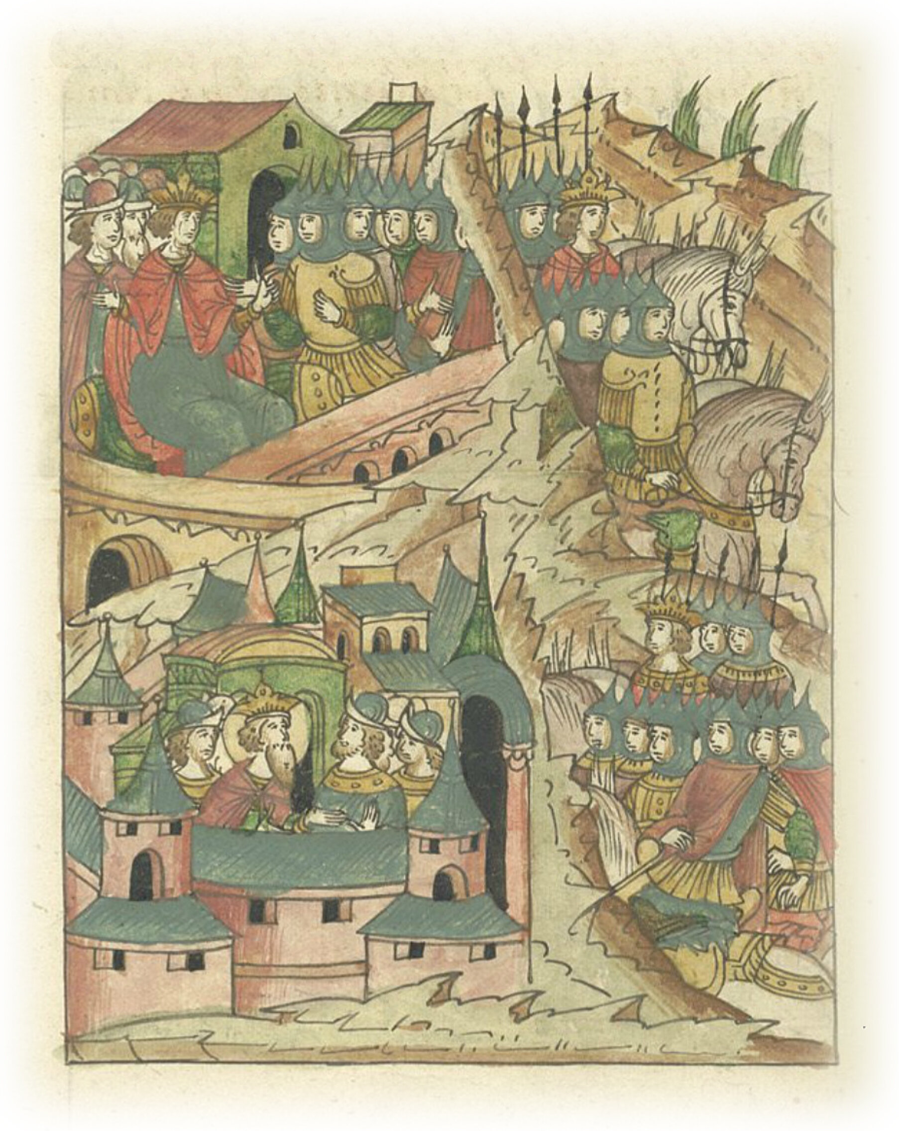 Языки говорят воеводам царя Ивана Васильевича, что магистр окопался большим рвом вокруг города Рындола, бьет из пушек и пищалей и приступает к Рындолу.