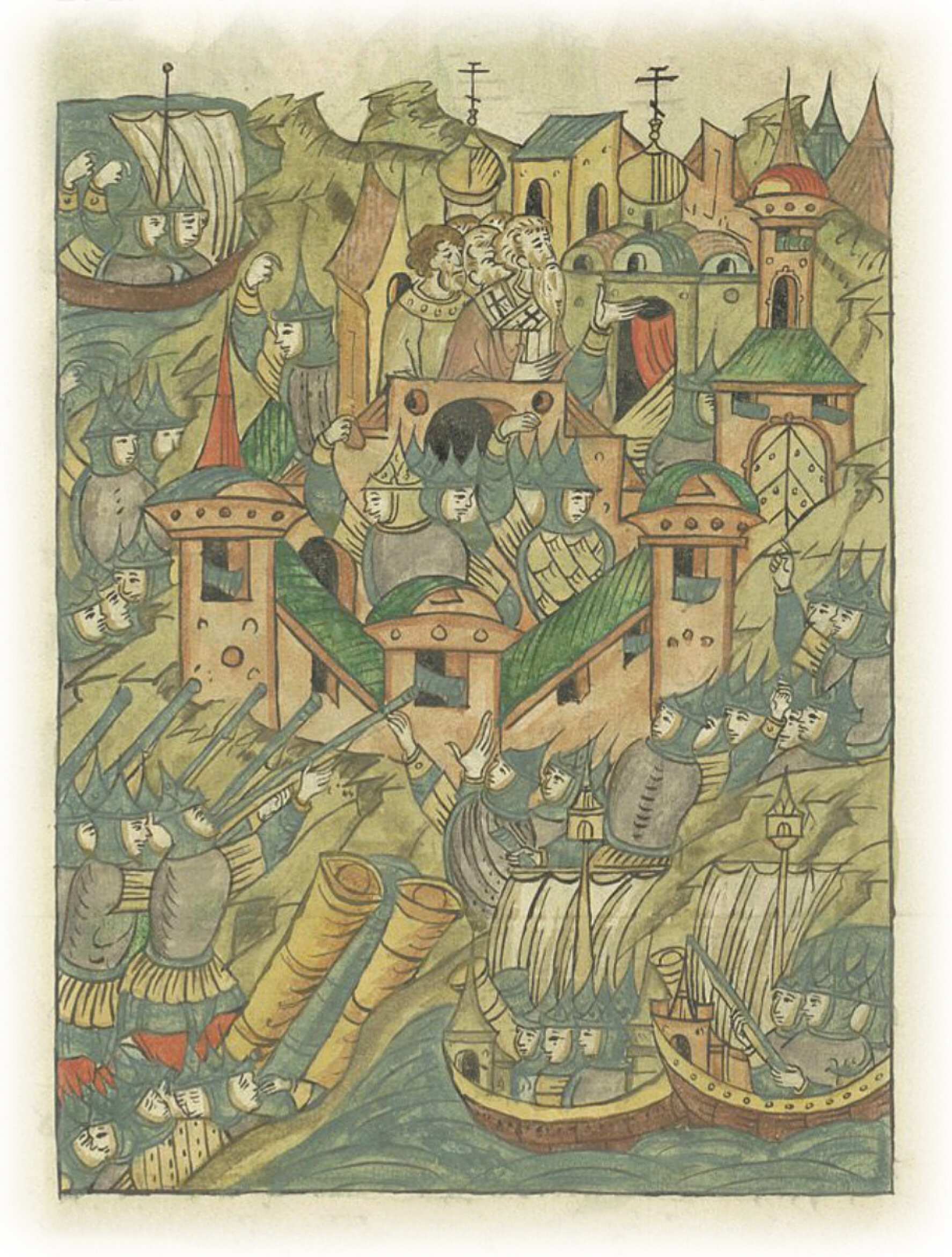 Городские же люди все вышли на стены и сопротивляясь им, бились крепко, и только патриарх и святители с священническим чином остались по церквам Божьим и молились Господу Богу со слезами и с рыданием.