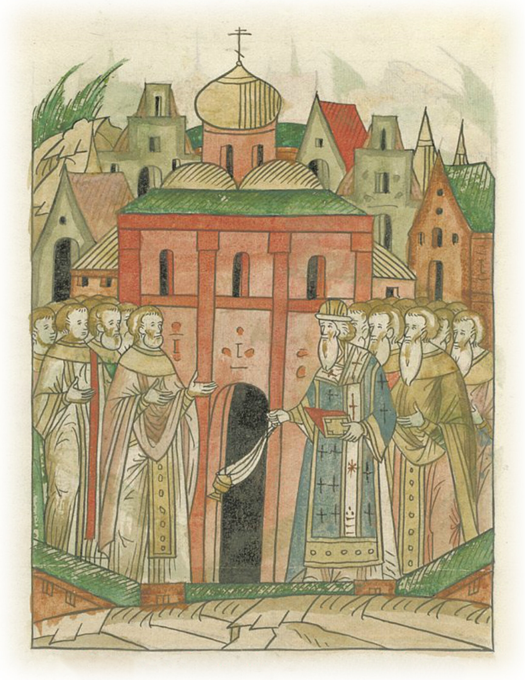 Об освящении церкви Ризоположения. В том же году (месяца) августа в 31 день была освящена церковь на митрополичьем дворе Положения Риз Пречистой (Богородицы).