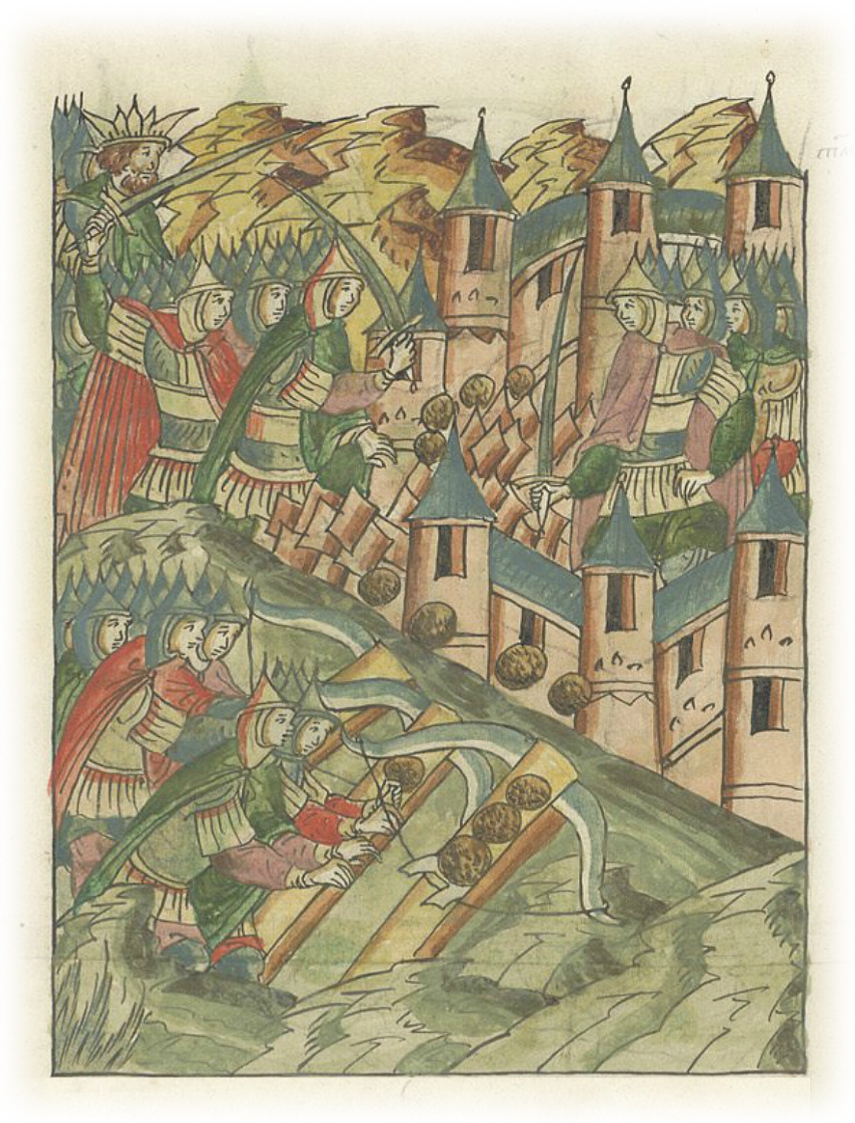 Татары же бились у города, желая его взять, и разбили стены городские, и взошли на вал.