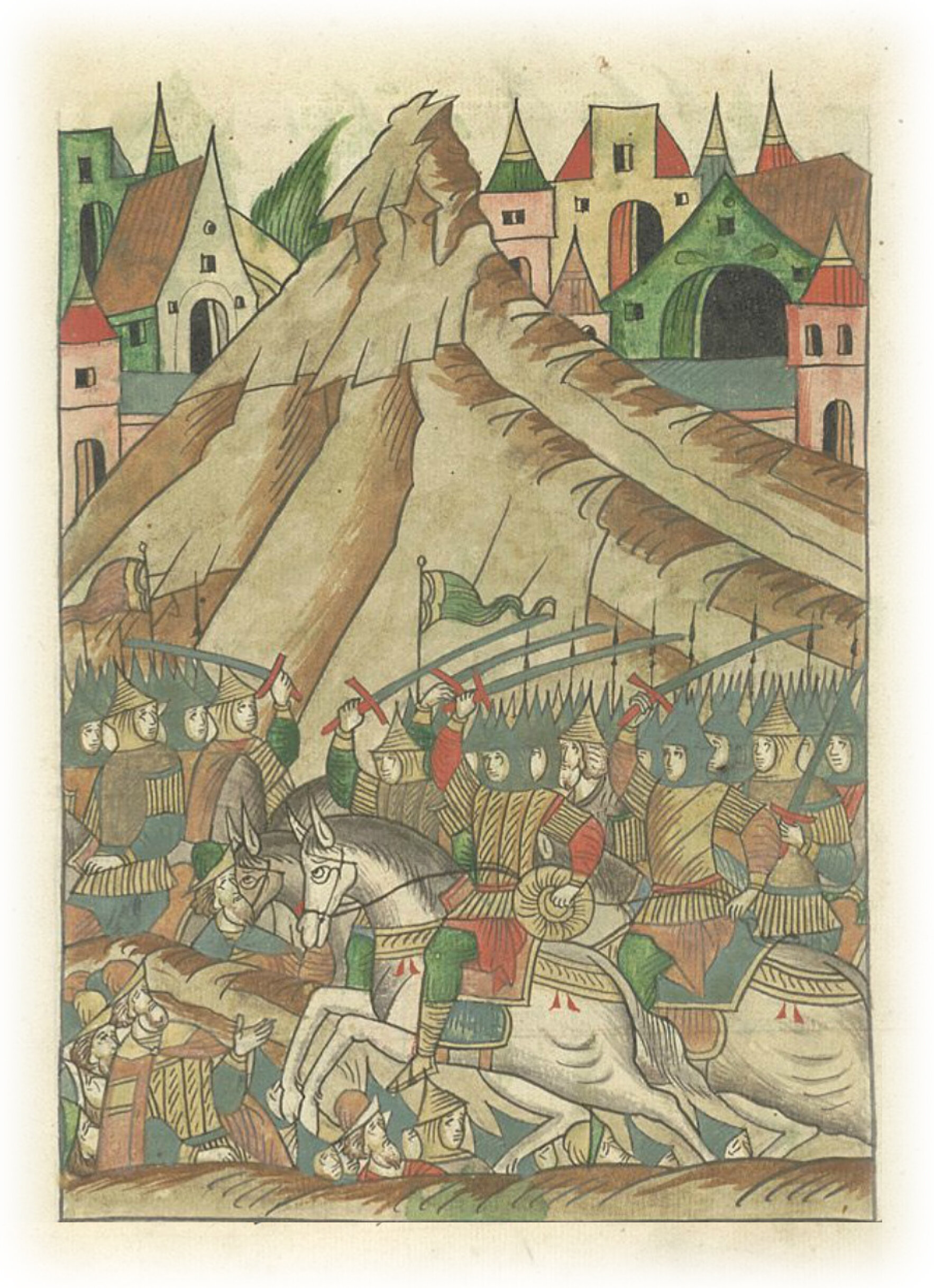 Языки говорят воеводам царя Ивана Васильевича, что магистр окопался большим рвом вокруг города Рындола, бьет из пушек и пищалей и приступает к Рындолу.