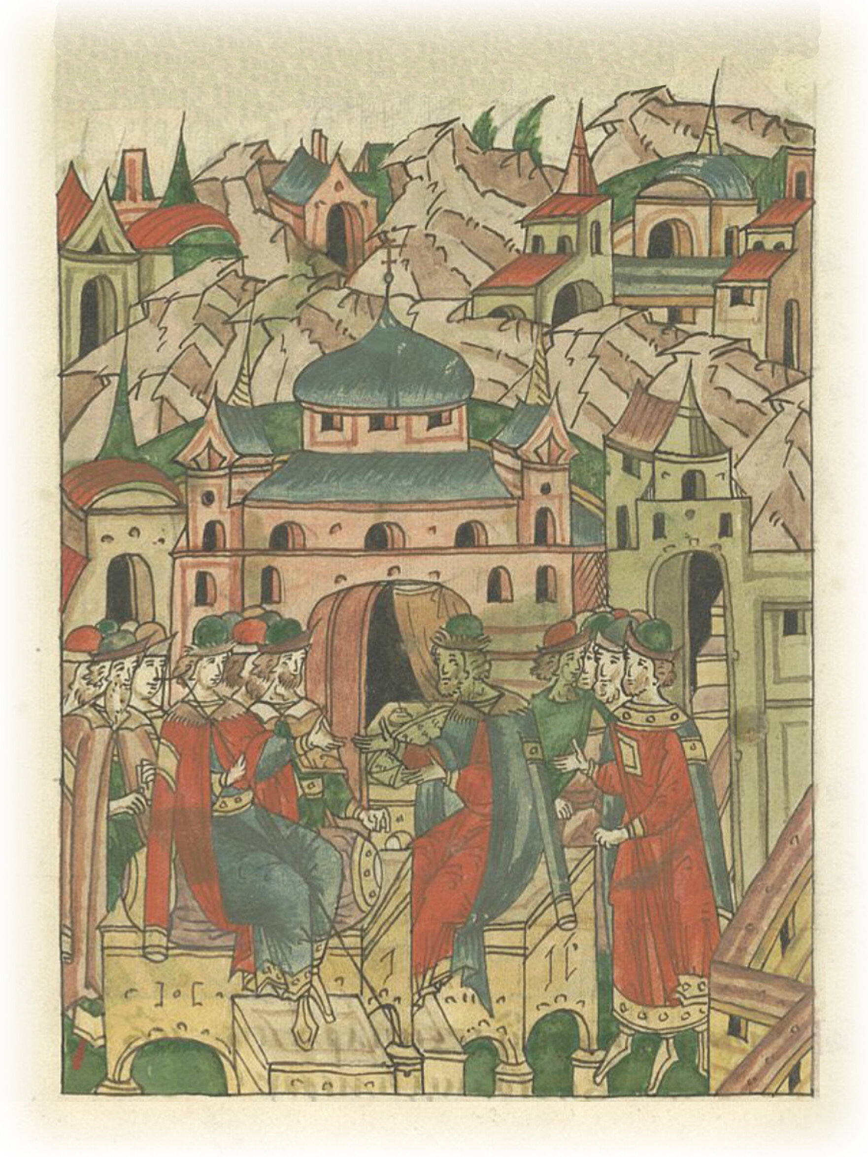 Ругодивские посадники Яким и Захар приезжают в Москву. Воеводы царя Ивана Васильевича Алексей Адашев и Иван Михайлов сообщают им, что государь пожалует их, если сдадут его воеводам помимо Ругодива Вышгород.