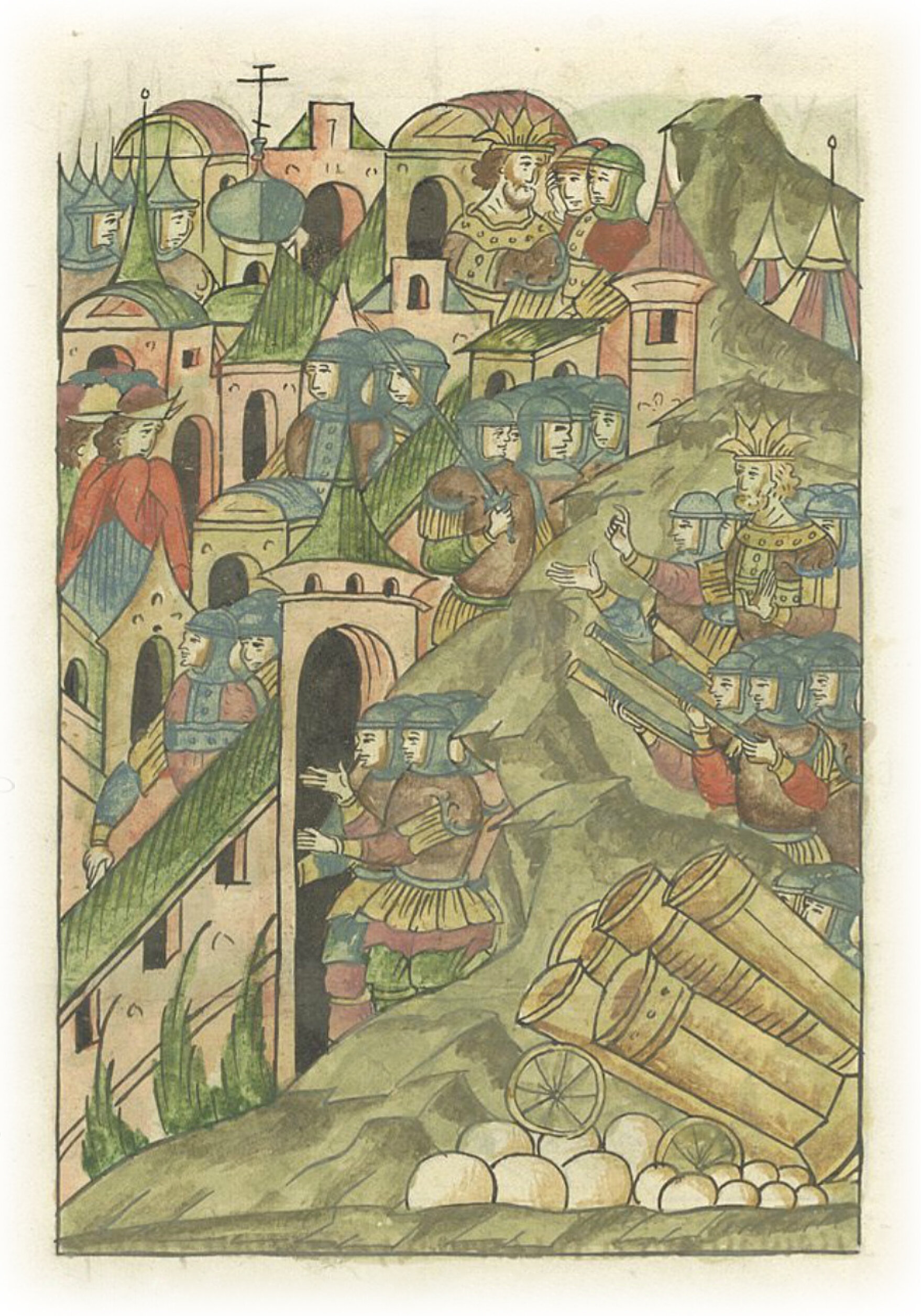 Языки говорят воеводам царя Ивана Васильевича, что магистр окопался большим рвом вокруг города Рындола, бьет из пушек и пищалей и приступает к Рындолу.