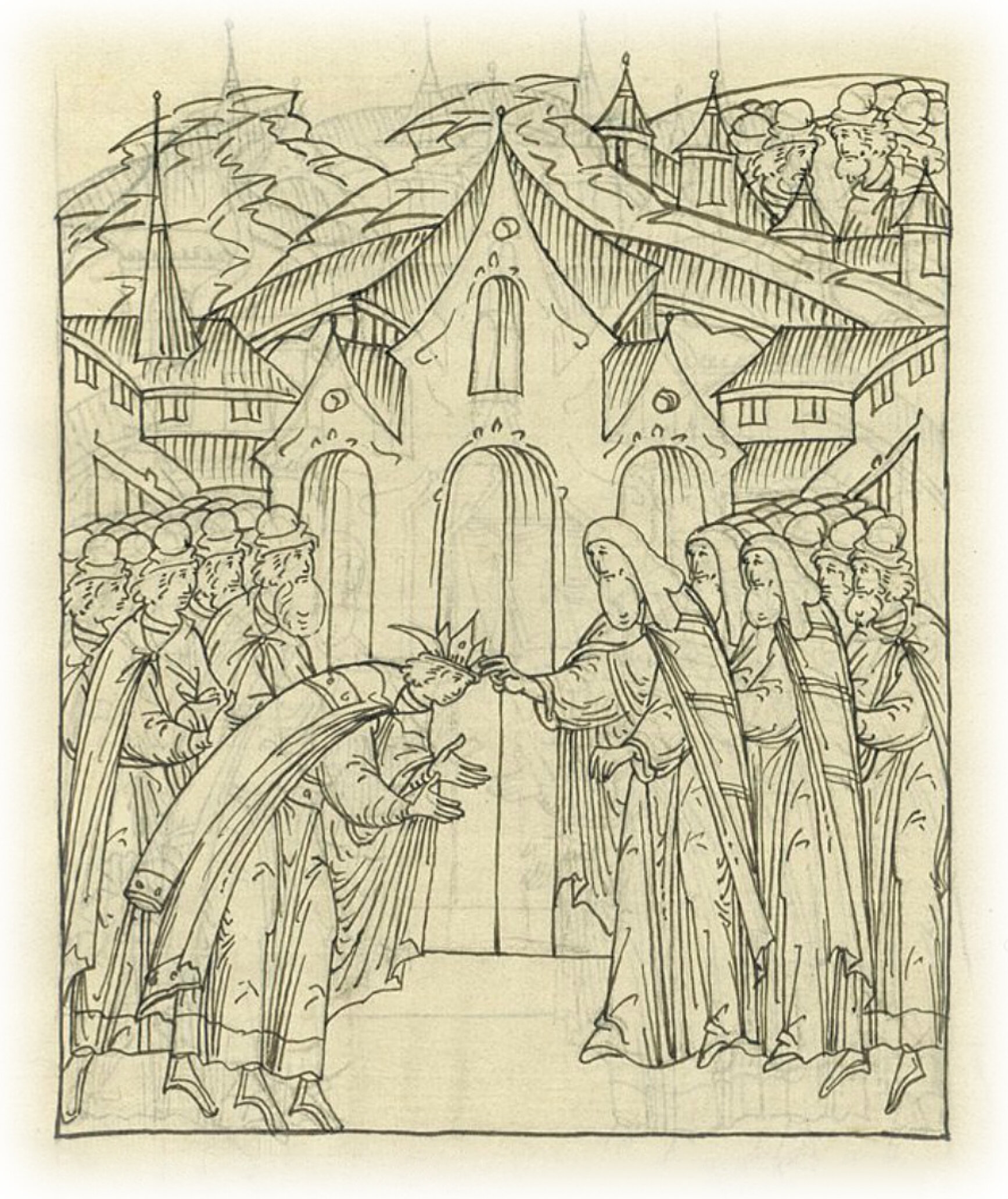 Ругодивские посадники Яким и Захар приезжают в Москву. Воеводы царя Ивана Васильевича Алексей Адашев и Иван Михайлов сообщают им, что государь пожалует их, если сдадут его воеводам помимо Ругодива Вышгород.