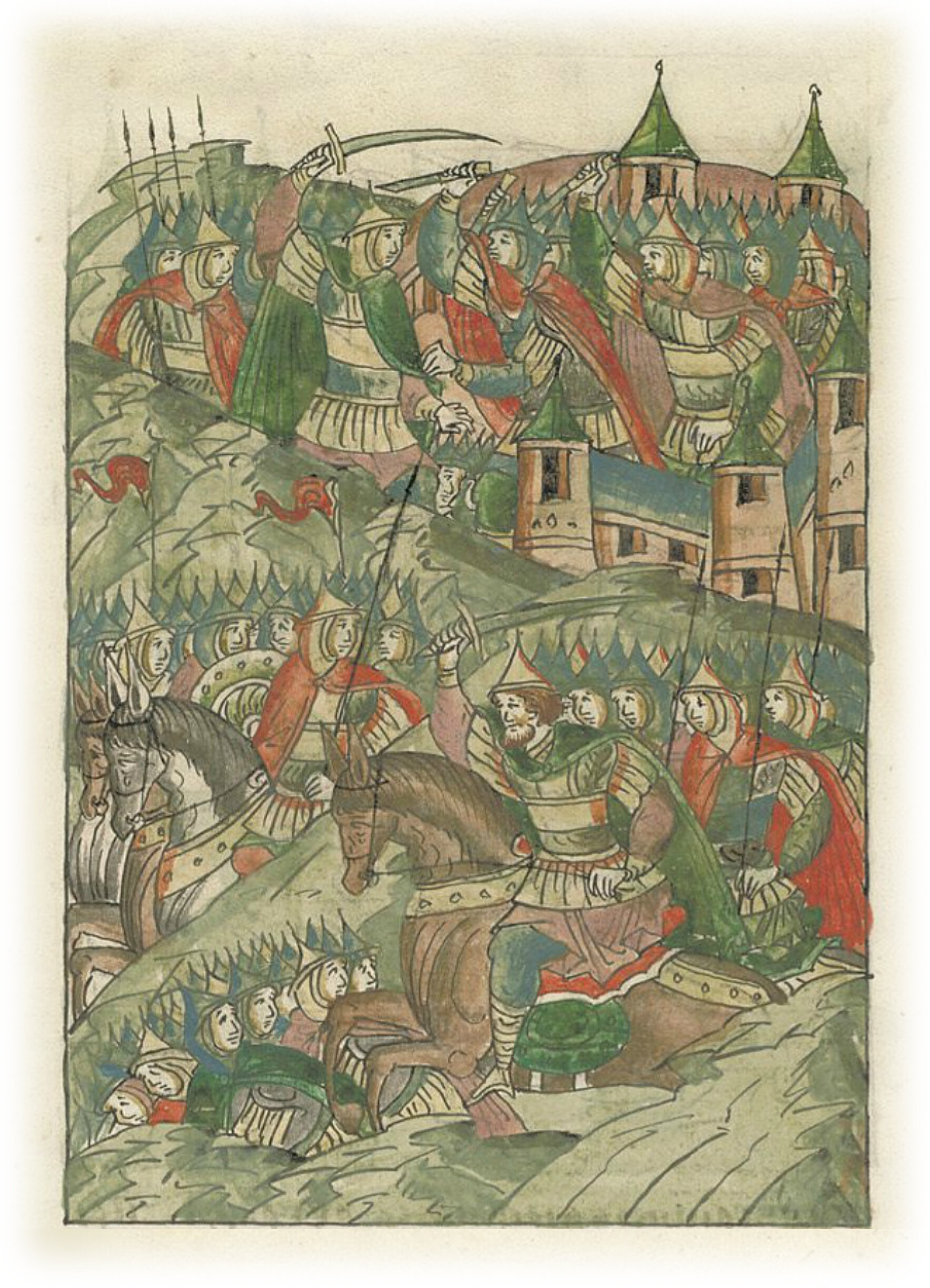 Горожане же там ножами резались с ними. И, совет сотворив, вышли из города против них, на полки их напав, посекли их, и убили 4 тысячи татар, и сами избиты были.