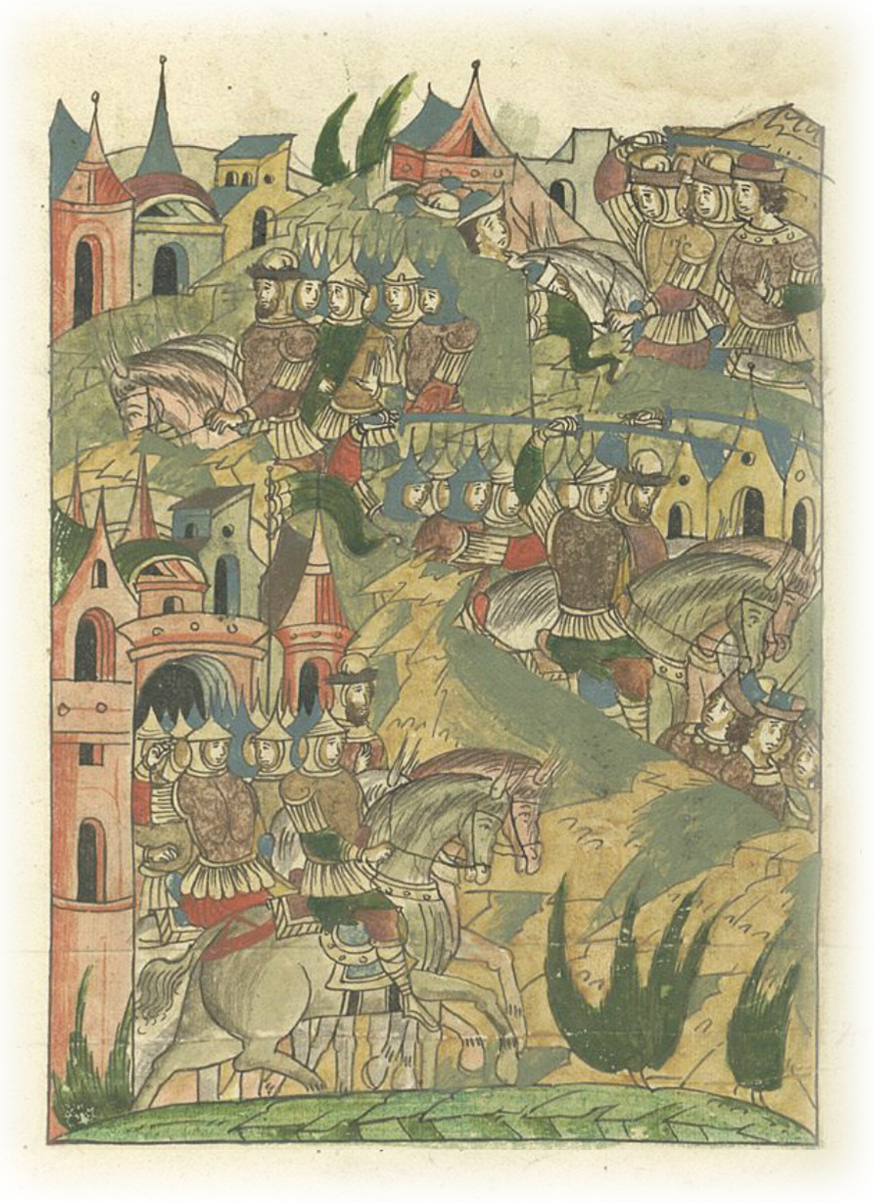 Языки говорят воеводам царя Ивана Васильевича, что магистр окопался большим рвом вокруг города Рындола, бьет из пушек и пищалей и приступает к Рындолу.