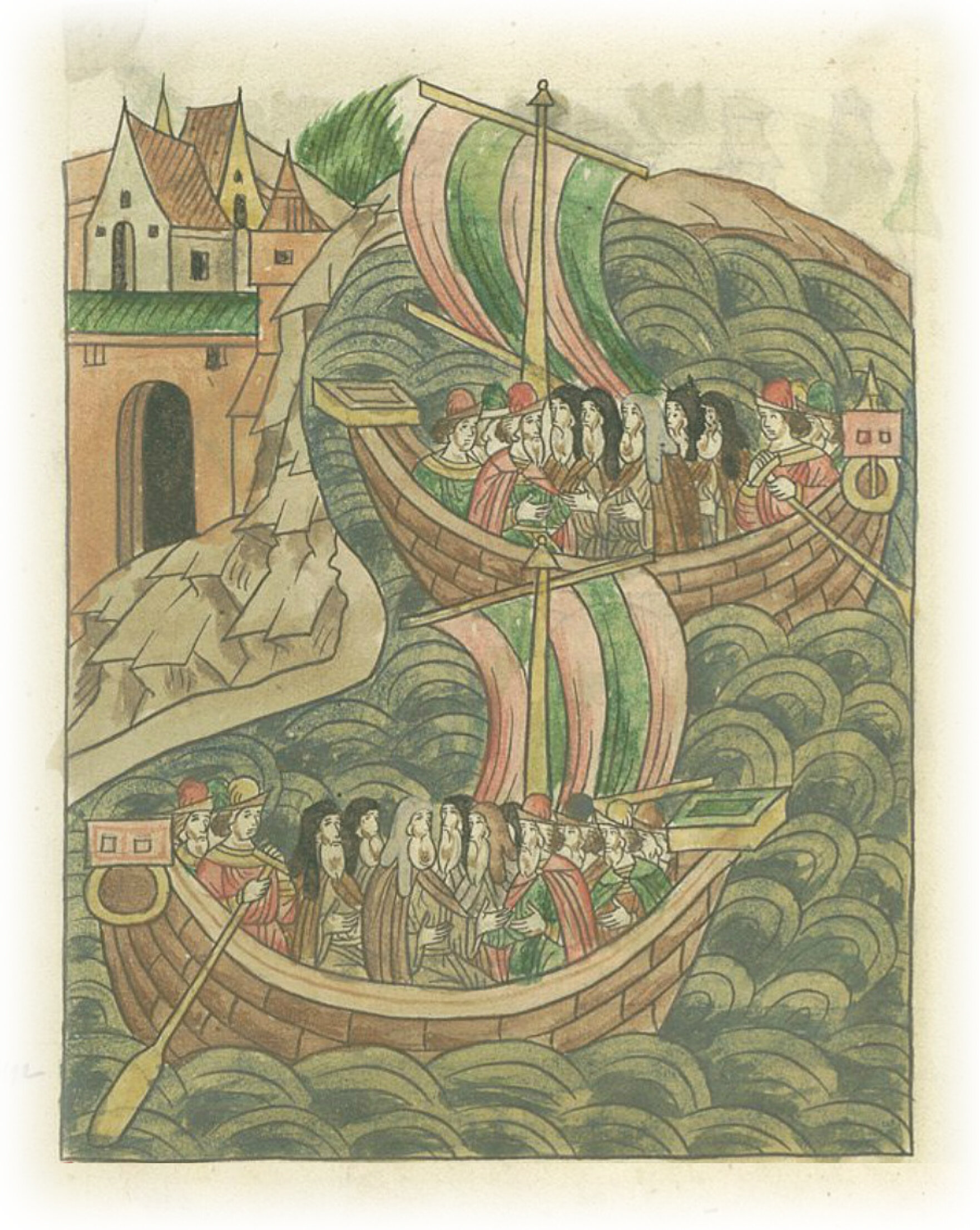 И так во вторник плывя, минули Пандораклию. В среду же подул ветер встречный сильный. И снова возвратились в Пандораклию.